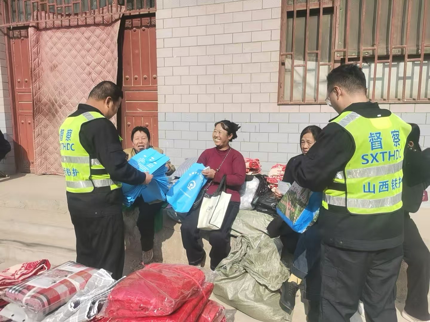“大娘,这个围裙送您,上面印着铁路安全知识。”队员小栋热情招呼着,“平时做饭系着,安全知识天天看,就记住啦!” 围裙上印着简明的安全提示:“铁路边,不烧荒”“线路上,不逗留”。这种接地气的宣传方式,比单纯发传单更受村民欢迎。