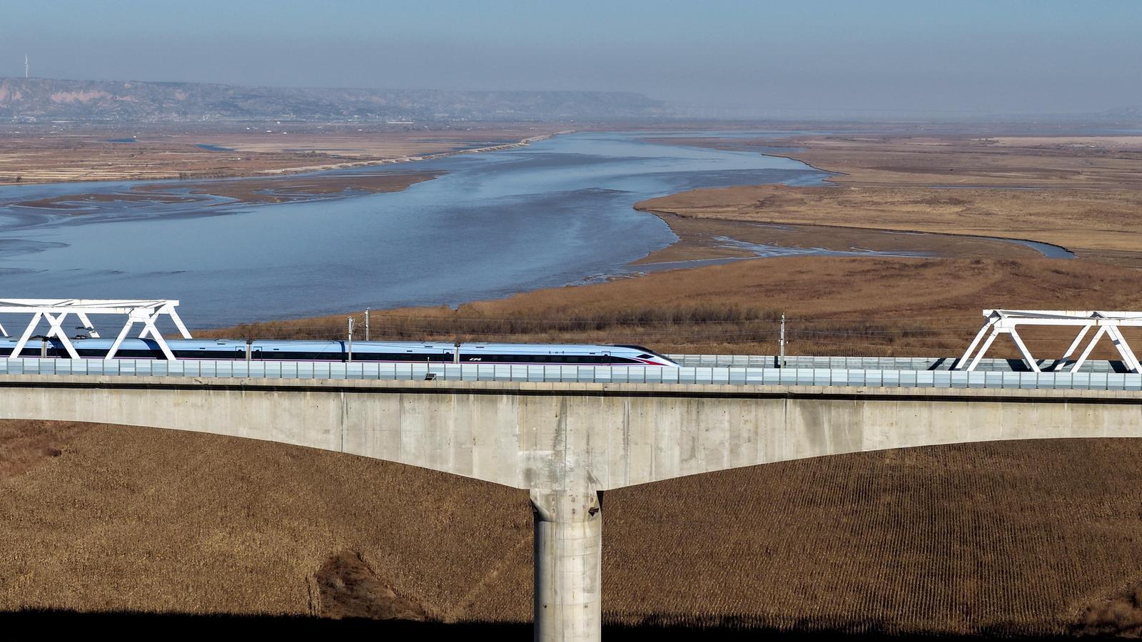 黄河奔涌 动车飞驰