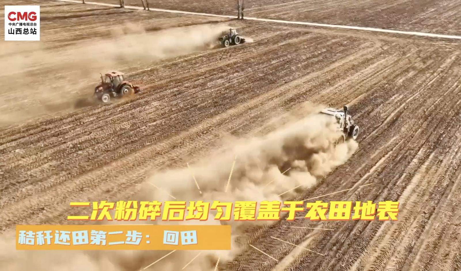 当地正在集中进行秸秆粉碎还田,先将玉米秸秆打捆,再对秸秆捆包二次粉碎后,均匀覆盖于农田地表,最后深翻……场面热火朝天,秸秆“变废为宝”。