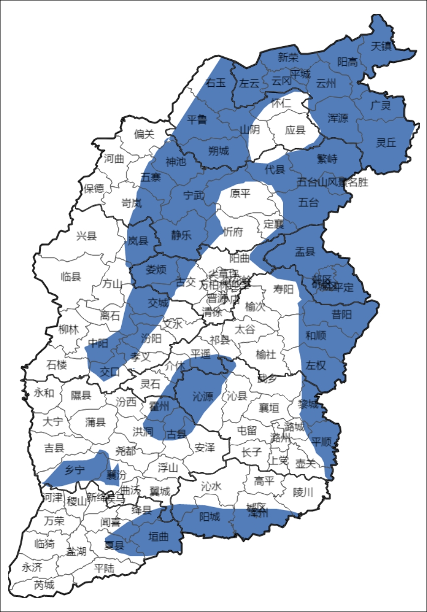 12月07日10时18分,山西省气象台变更大风蓝色预警,预警区域为大同市、朔州市、忻州市、吕梁市、太原市、晋中市、阳泉市、临汾市、运城市、长治市、晋城市。