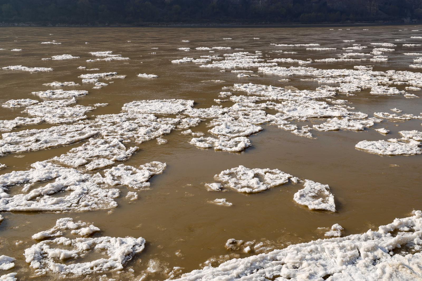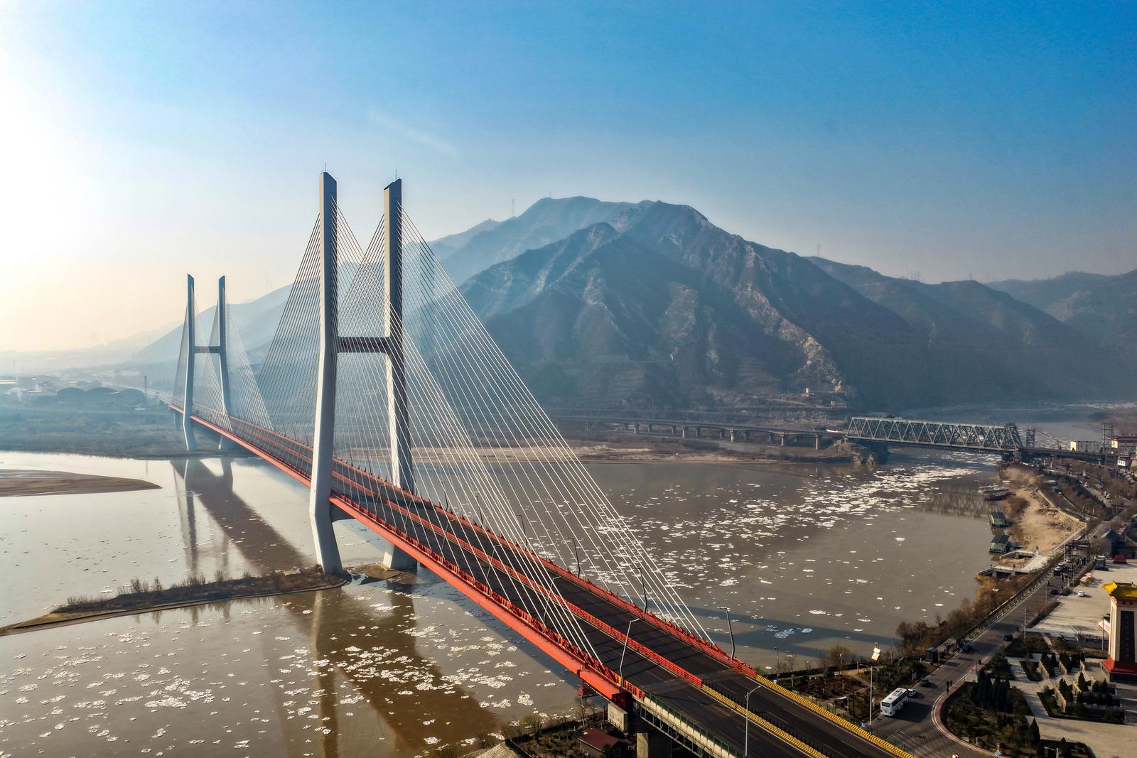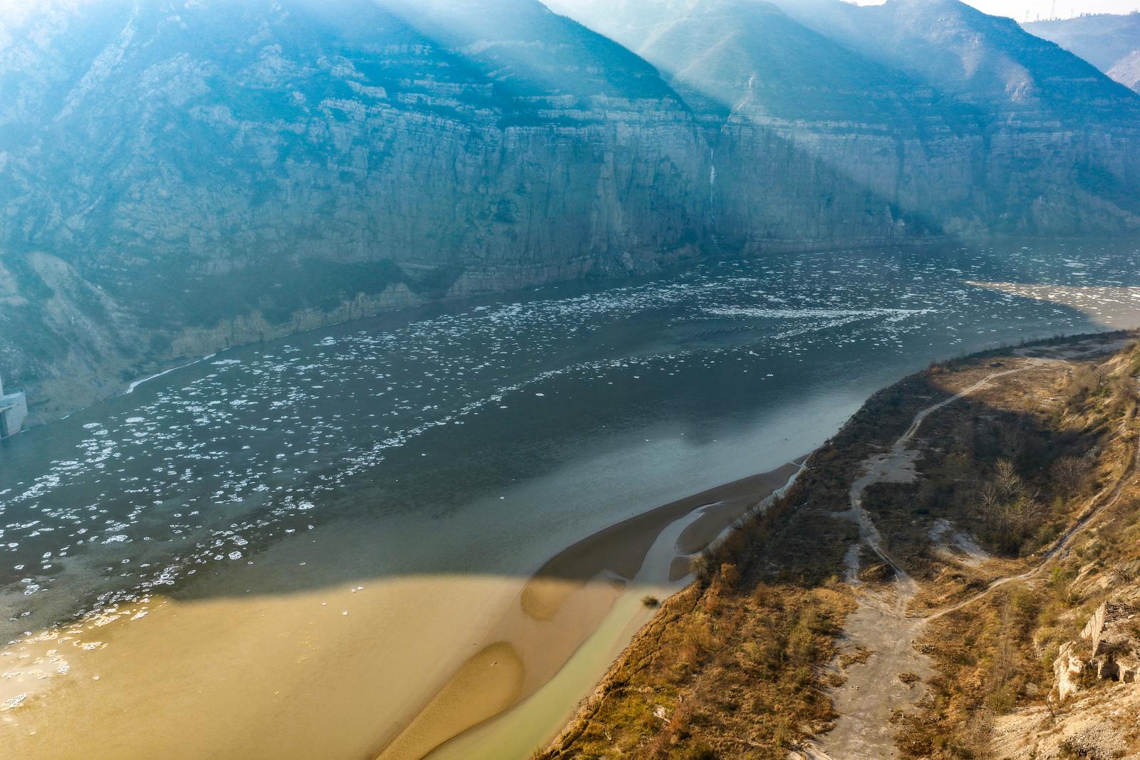 受近期持续低温天气影响,黄河山西河津段出现今年入冬以来首次流凌。在河道狭窄处,冰凌开始堆积;而在开阔河段,大量冰凌顺流而下。