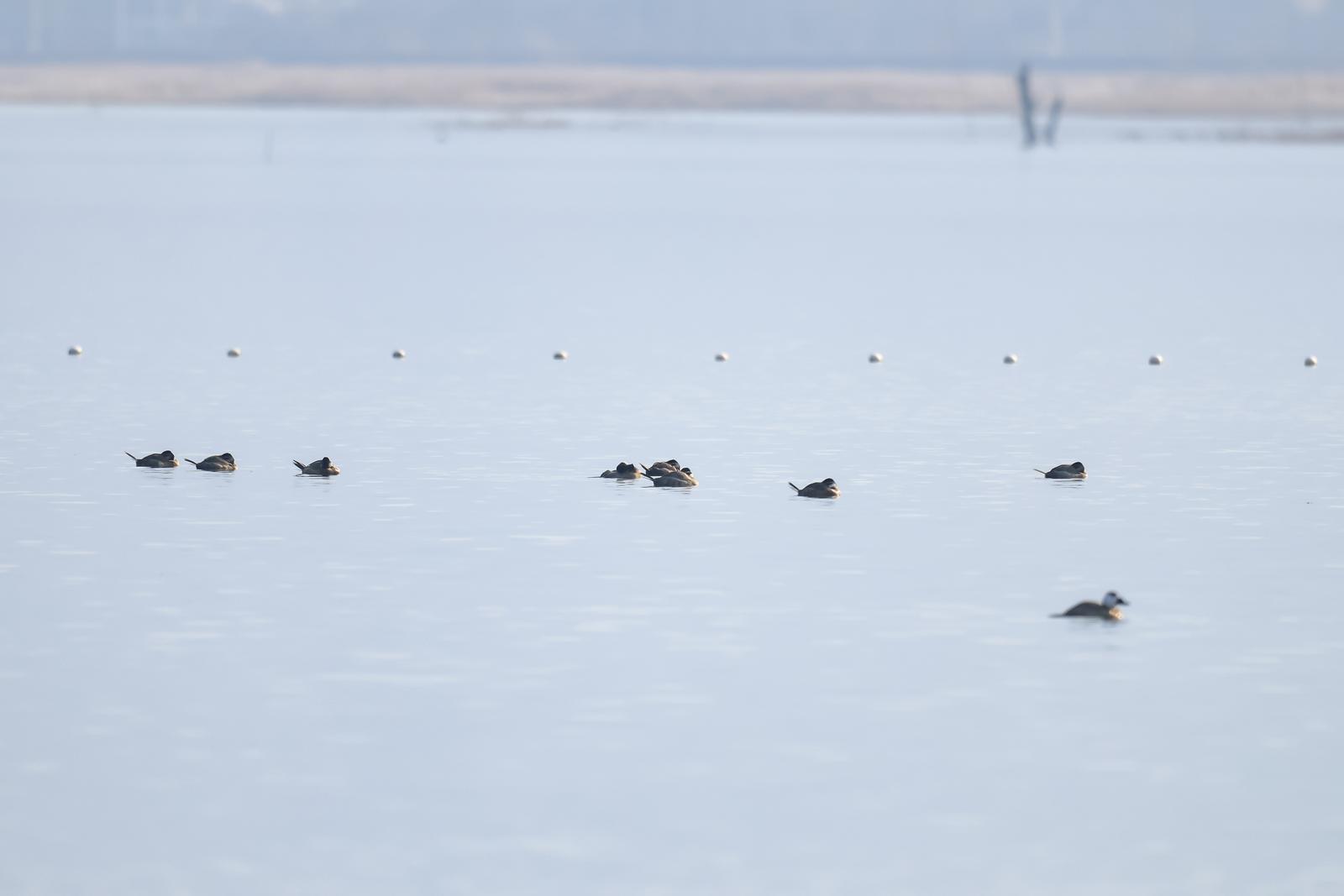 白头硬尾鸭是“唐老鸭”的原型,属全球濒危动物、国家一级保护野生动物。自11月下旬以来,在运城盐湖观测到的白头硬尾鸭约有20只,它们在水中游弋嬉戏、下潜觅食。