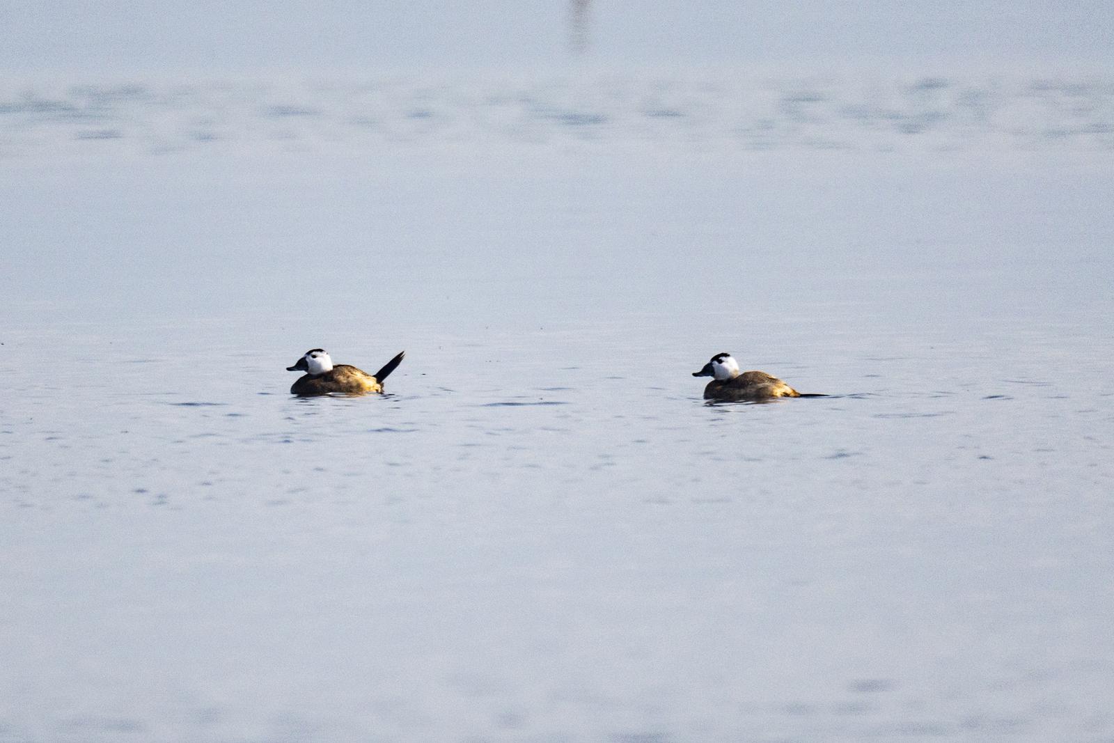 近日,国家一级保护野生动物白头硬尾鸭现身山西运城盐湖,吸引了众多观鸟爱好者前来观赏摄影。