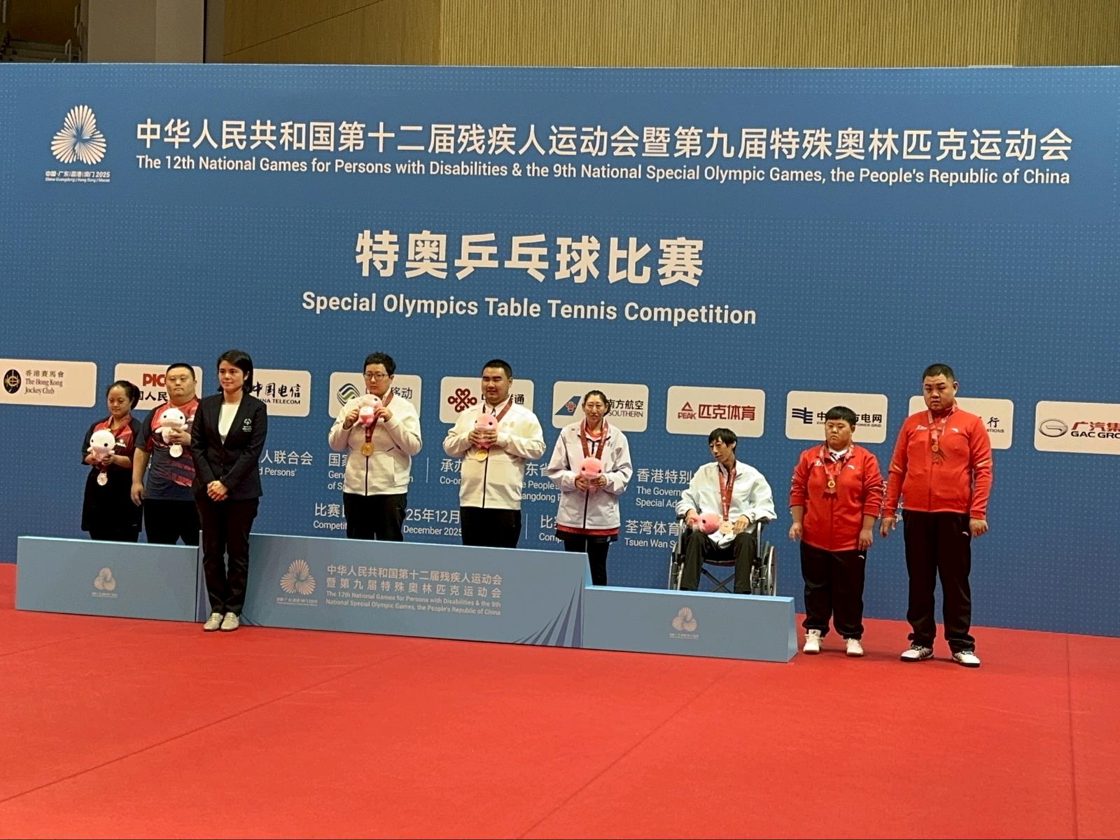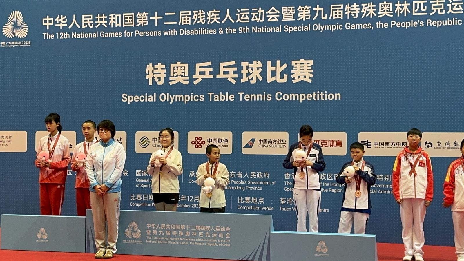 12月8日,全国第十二届残疾人运动会暨第九届特殊奥林匹克运动会特奥乒乓球比赛在香港荃湾体育场继续进行。在当天的比赛中,山西特奥运动员发挥出色,一举夺得特奥乒乓球项目12-15岁组混合双打冠军与30岁及以上组混合双打冠军,为山西再添两枚金牌。