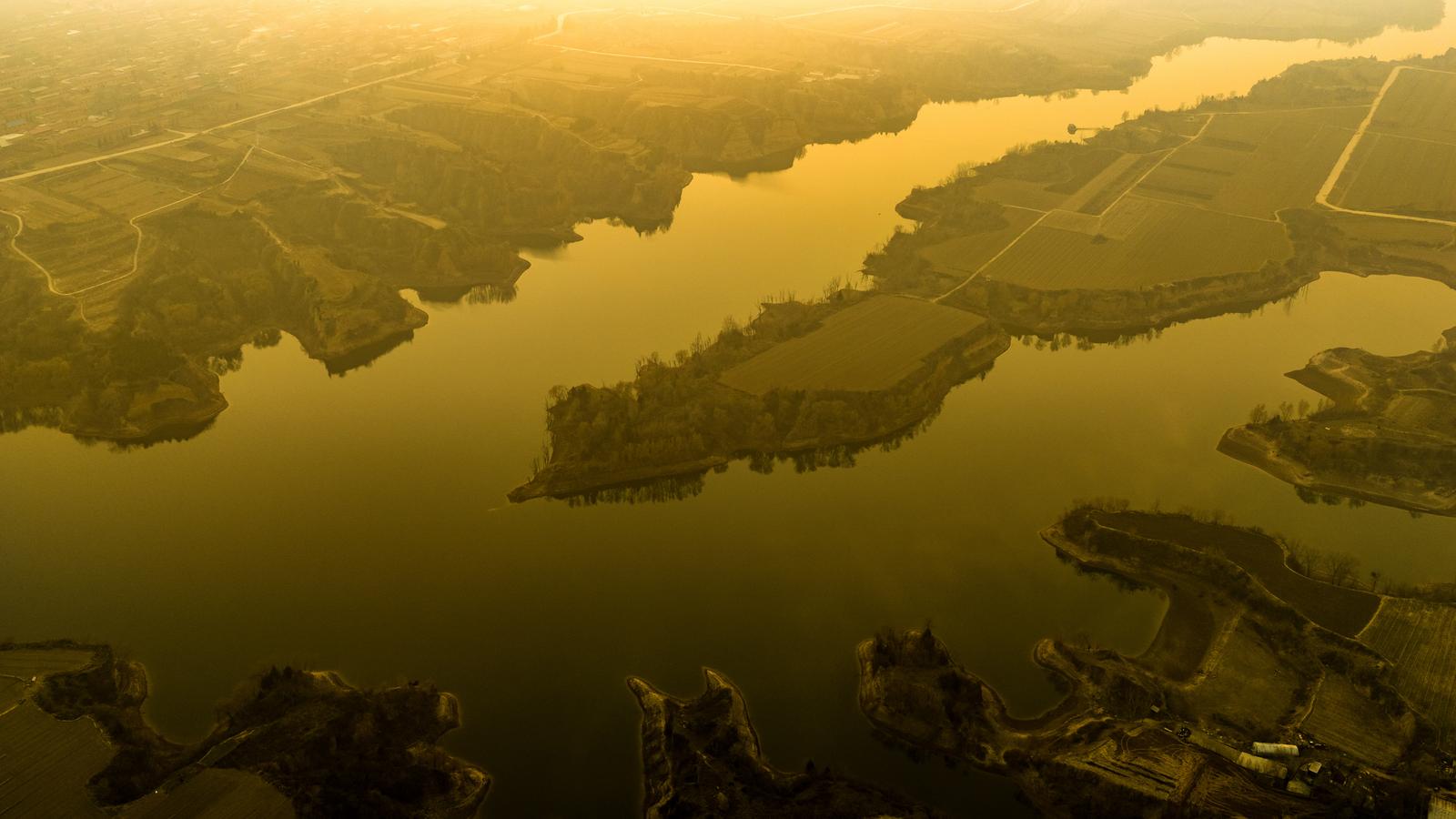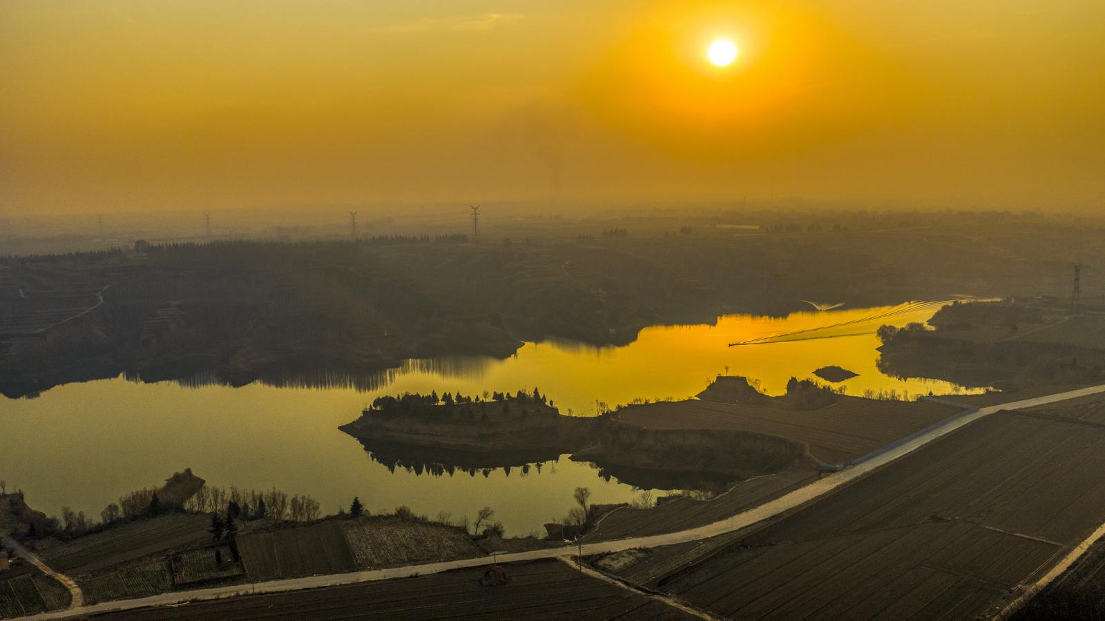 12月9日,在山西省临汾市襄汾县双龙湖湿地公园,冬日水景美不胜收。水面如巨大的蓝宝石镶嵌于田野间,夕阳下波光粼粼,水鸟掠空而过,动静相宜,生机盎然。澄澈的湖泊、丰茂的湿地与多彩的田园相映成趣,构成一幅绝美的生态画卷。