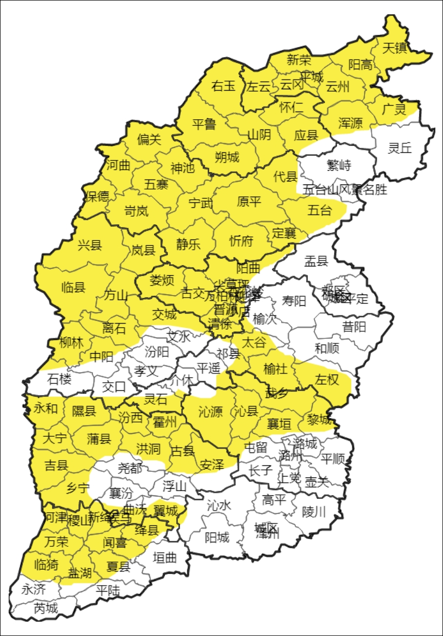 12月12日09时27分,山西省气象台发布寒潮黄色预警,预警区域为大同市、朔州市、忻州市、吕梁市、太原市、晋中市、临汾市、运城市、长治市。