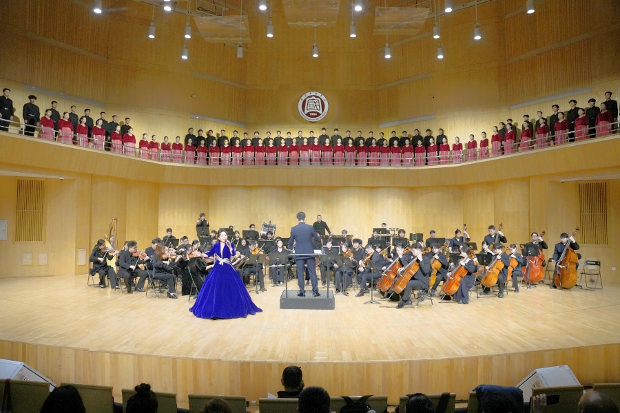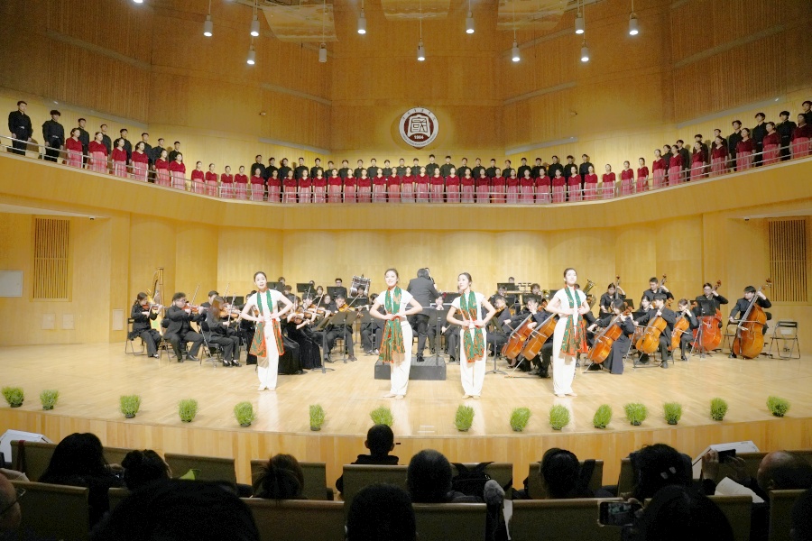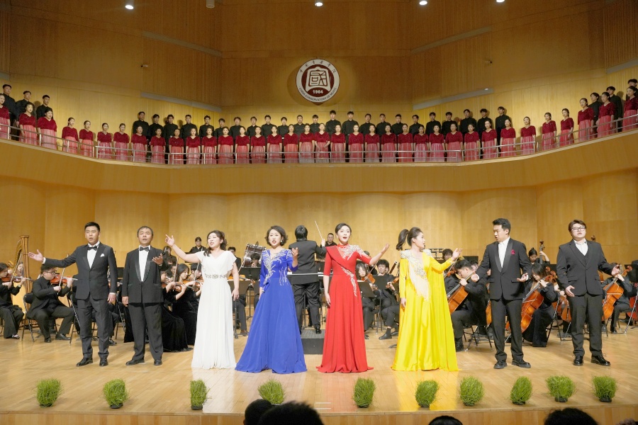 演出不仅是作品的展示,更是一场跨越院校、连接代际的艺术对话。中场环节特别致敬了中国音乐学院2001届校友、《父亲》曲作者之一贾韵及其恩师杨青教授。随后,从中国音乐学院走出的青年歌唱家张景超、赵晨希重返母校舞台,分别献唱了《三晋风华》与《携手追梦路》,体现了艺术血脉的接续传承。整场演出由两校师生同台完成,虽合排时间有限,却因共同的艺术追求与精神共鸣而碰撞出璀璨火花。