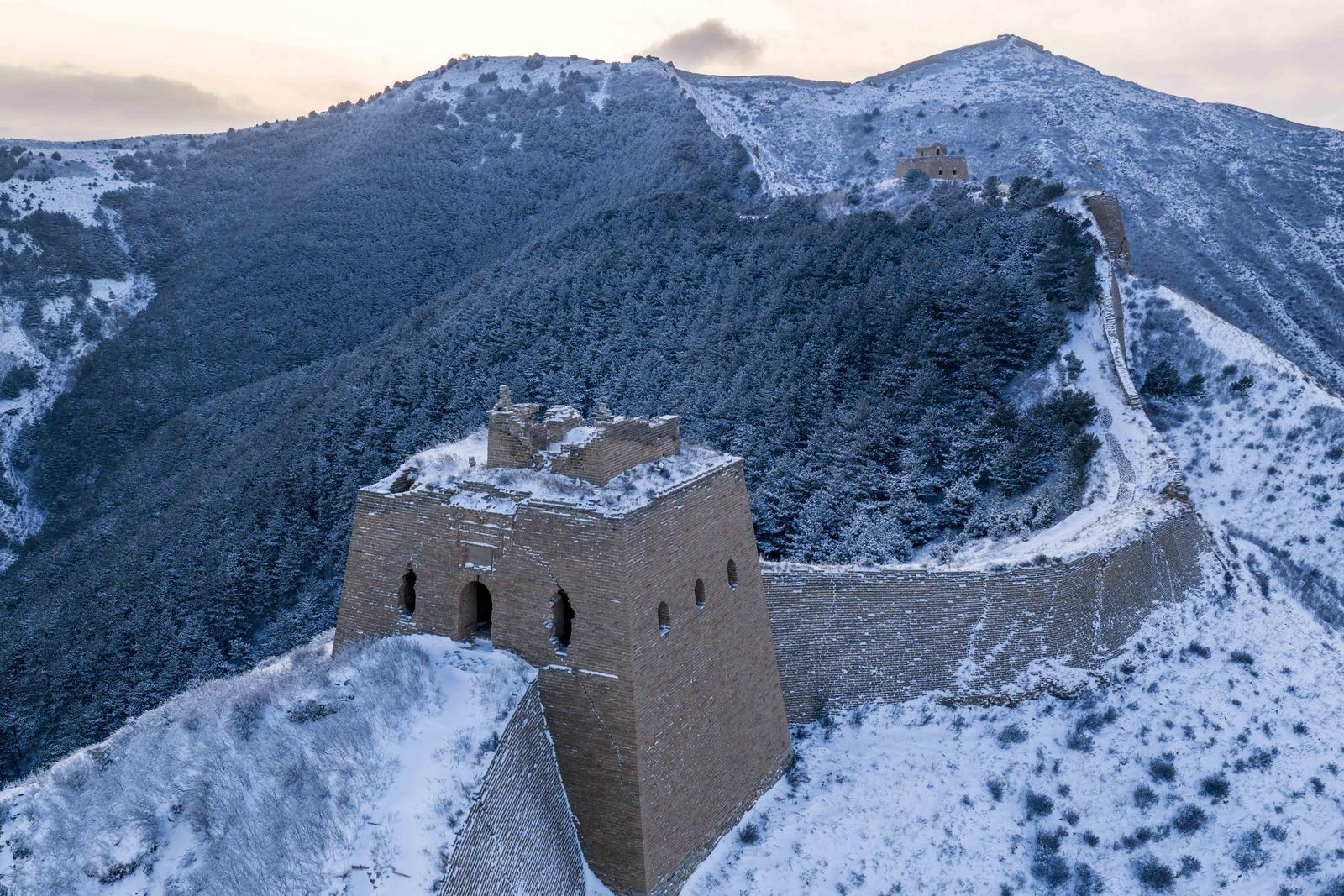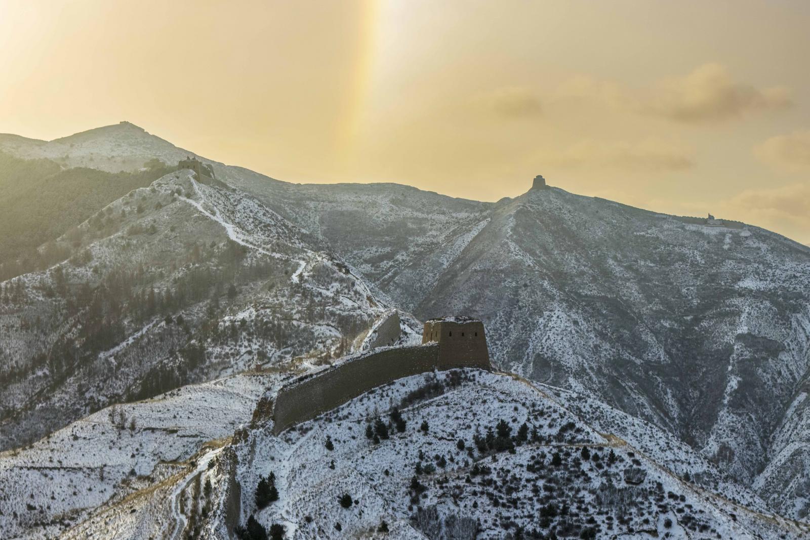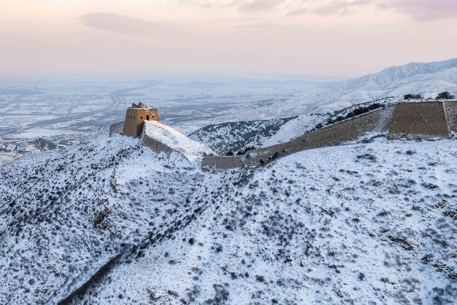 12月13日,一场降雪为朔州市山阴县广武明长城披上银装,造就了边塞独有的壮阔景致。雪后的城墙如银色巨龙盘桓恒山山脉,青灰砖石被白雪尽数覆盖,蜿蜒起伏间尽显雄浑。