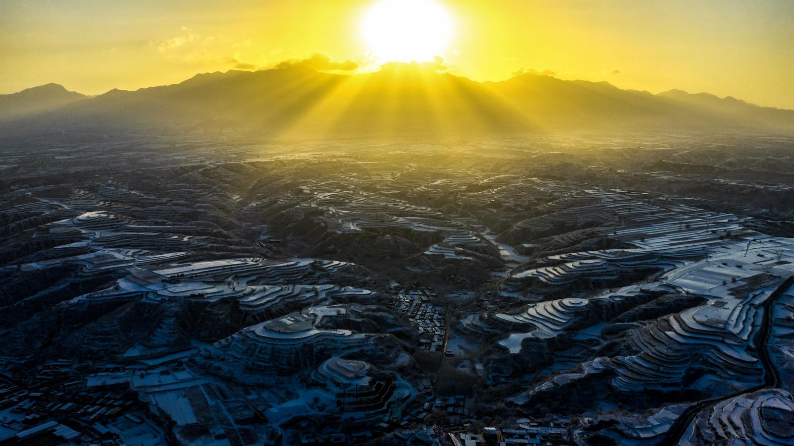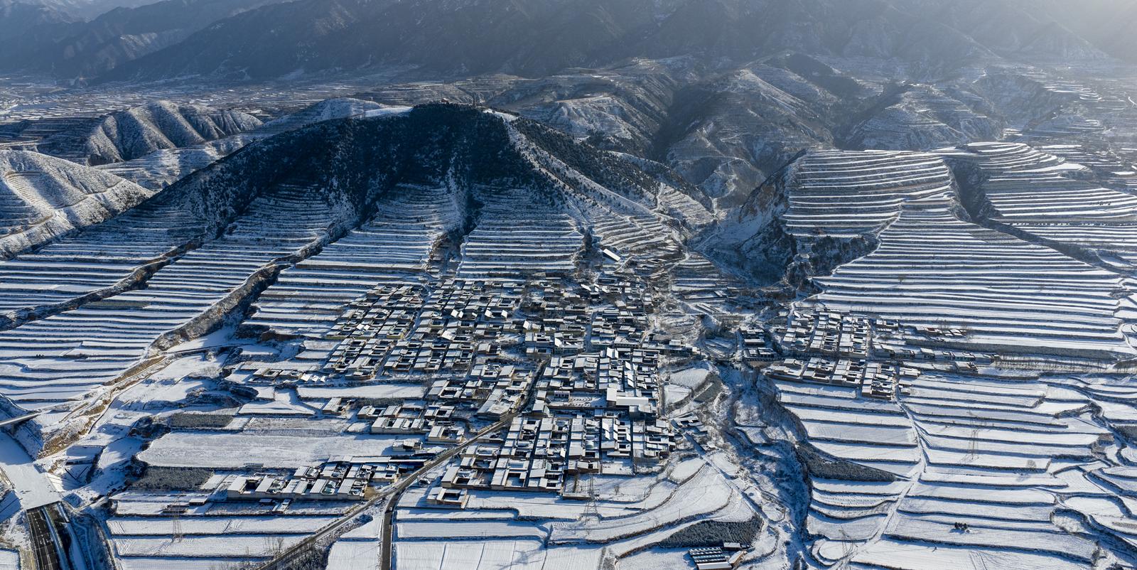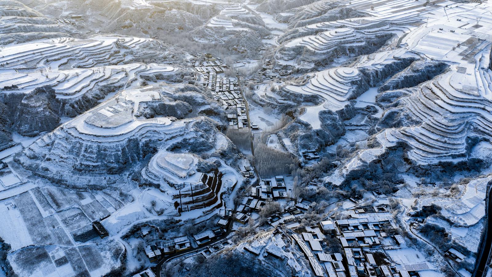 12月14日,山西省临汾市霍州市梯田在白雪的覆盖下,呈现出如梦似幻的壮美景象,宛如大地镌刻的精美指纹,线条流畅,层次分明。