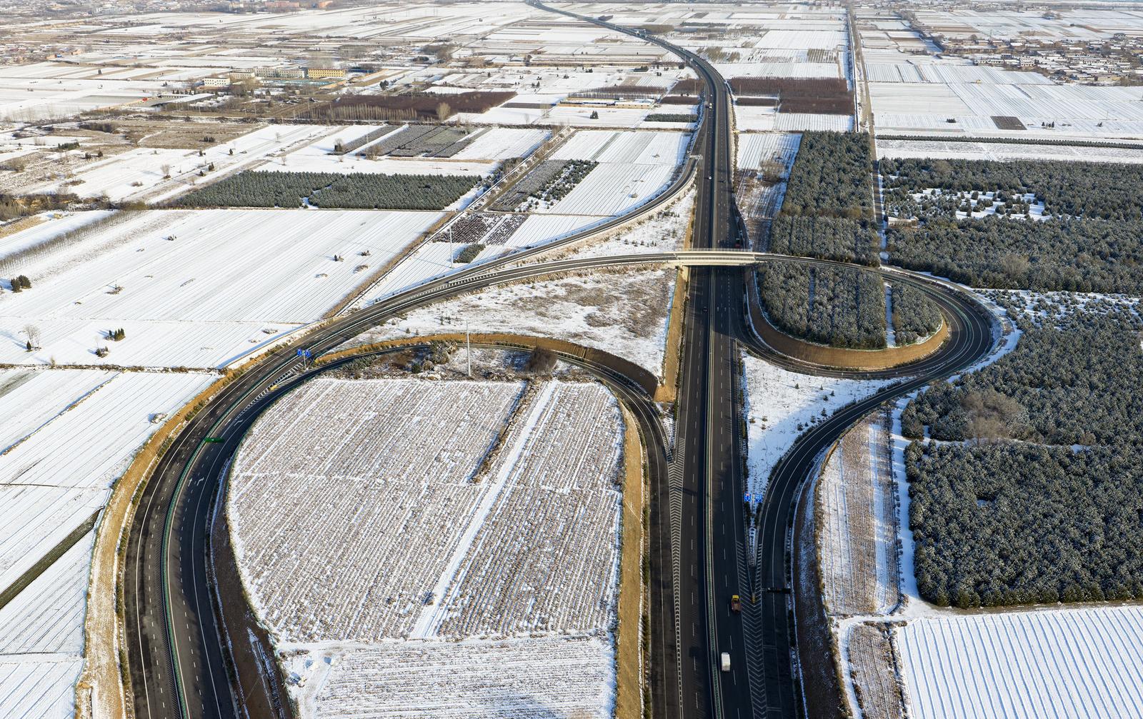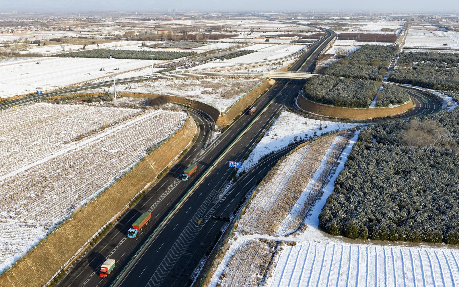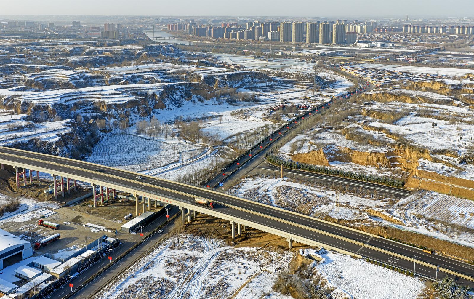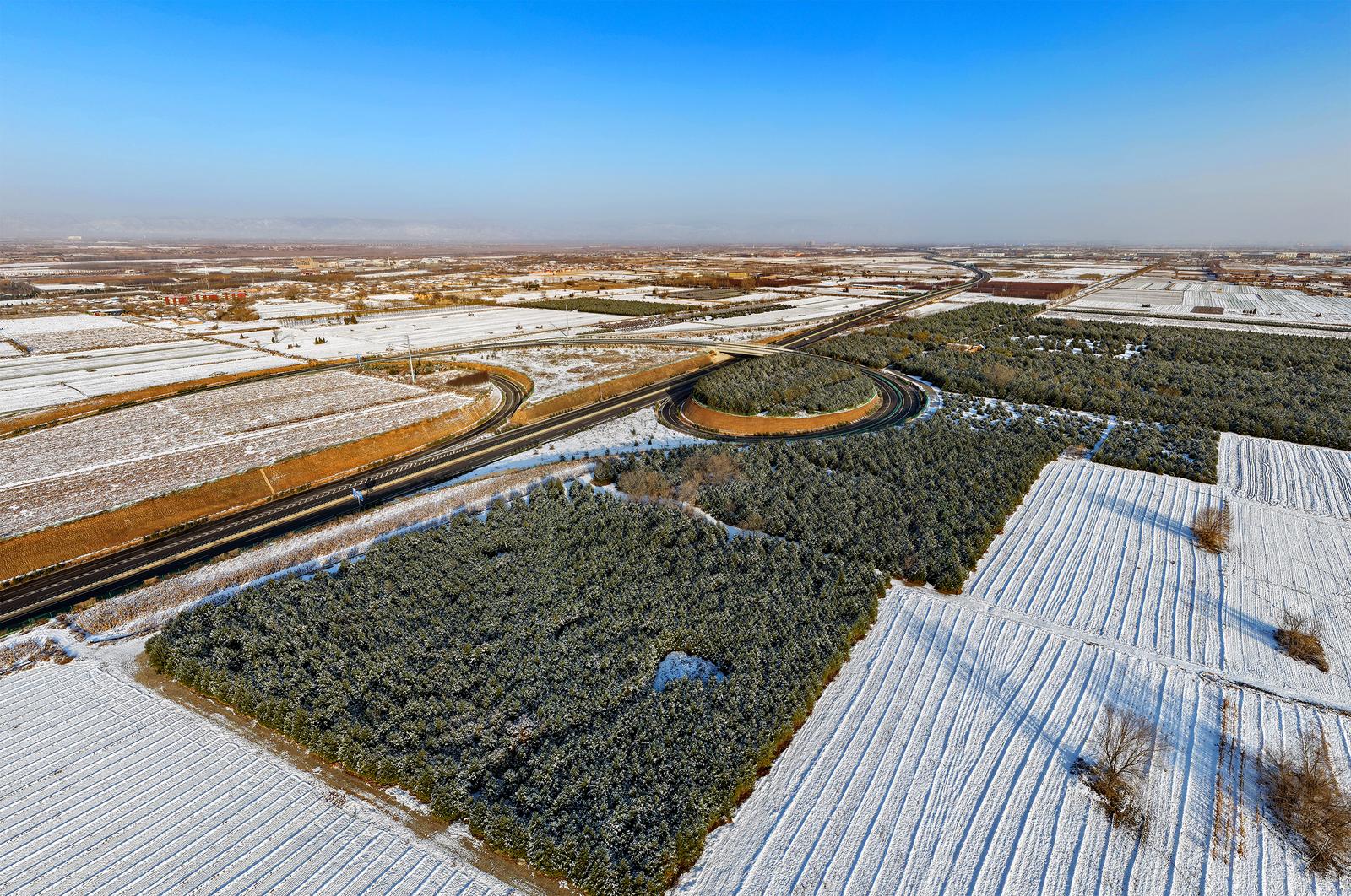 在临汾市襄汾县新城镇境内,这条新改建的国道108线纵贯南北,雪景如画,与沿线的田园、村庄共同构成一幅流动的冬日画卷。