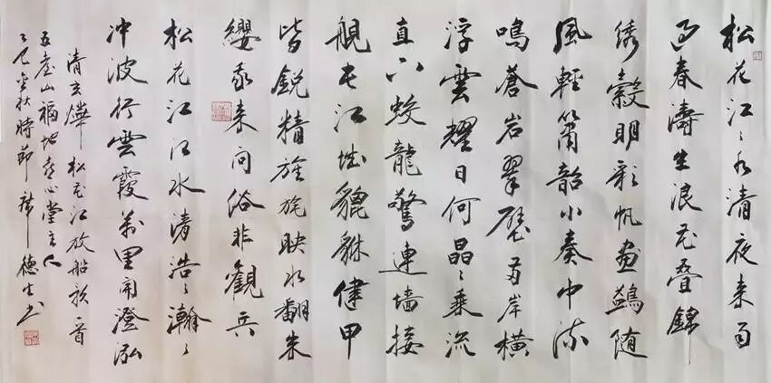 山水相隔,笔墨为桥;文心相契,情谊绵长。席德生先生的墨宝,是文化的传承,更是情谊的见证。从初识时的文化共鸣到如今的惺惺相惜,我们以文会友、以字传情,让晋地的厚重与关东的豪迈在笔墨间交融。这份跨越千里的文友之谊,没有轰轰烈烈,却如细水长流,在岁月中沉淀,在墨香中愈发醇厚;恰似松花江流水,绵长不绝,又如长白山青松,四季常青。(李景辉)