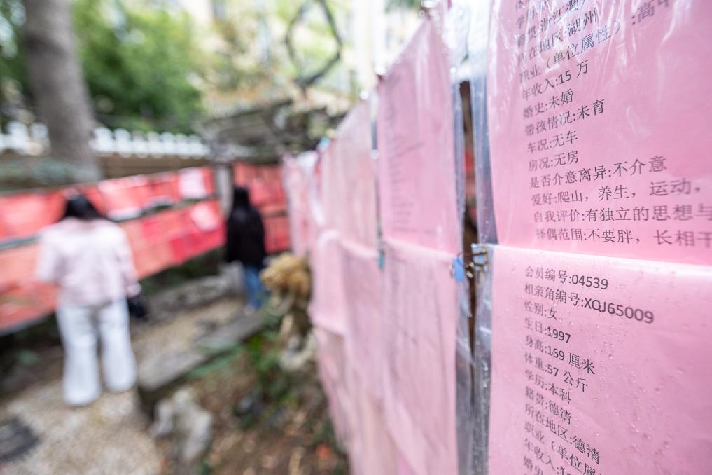 3月28日,适龄青年在浙江省湖州市一处相亲角寻觅爱情。在征婚交友信息中,对另一半体重的要求也赫然在列。