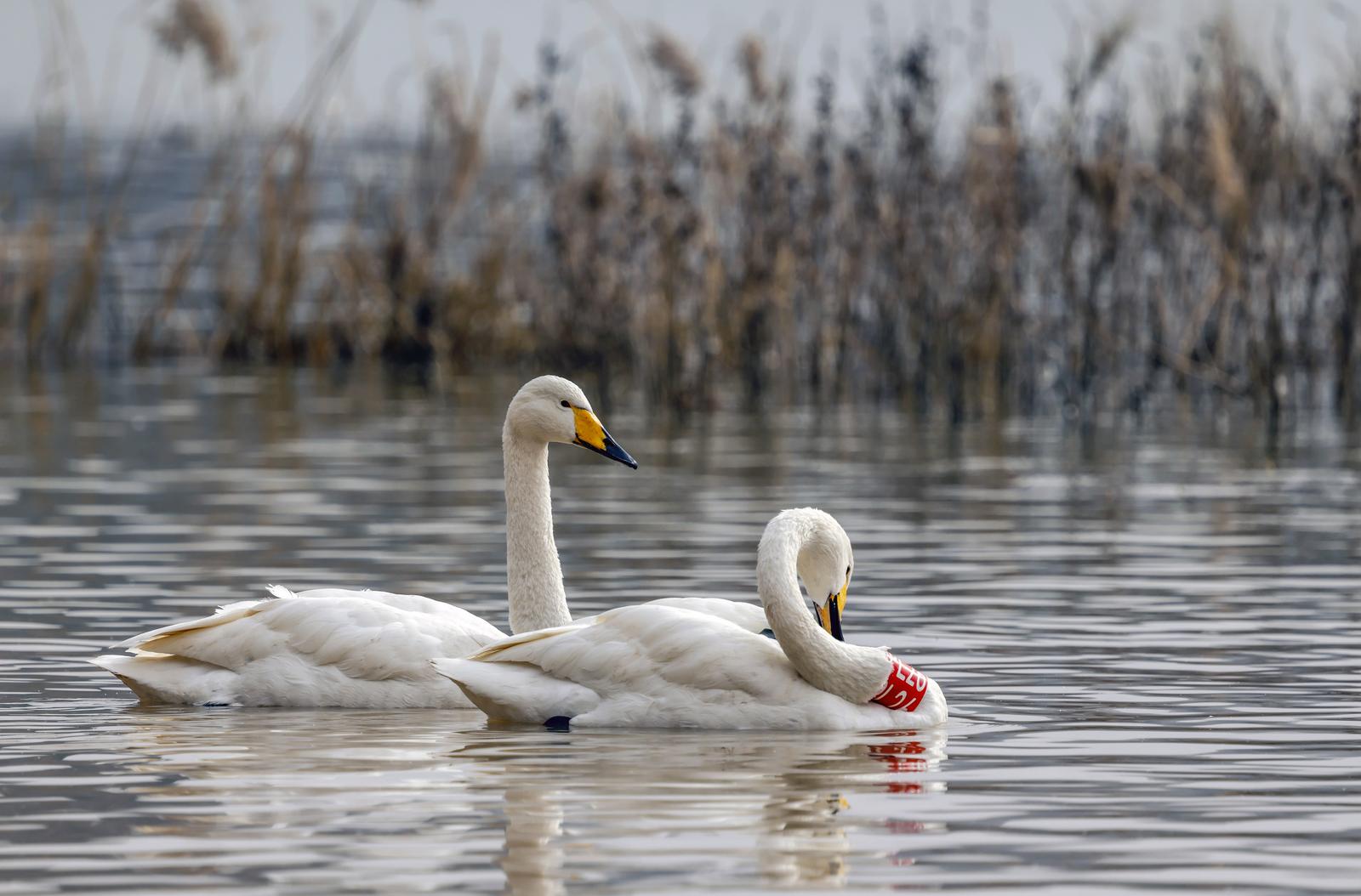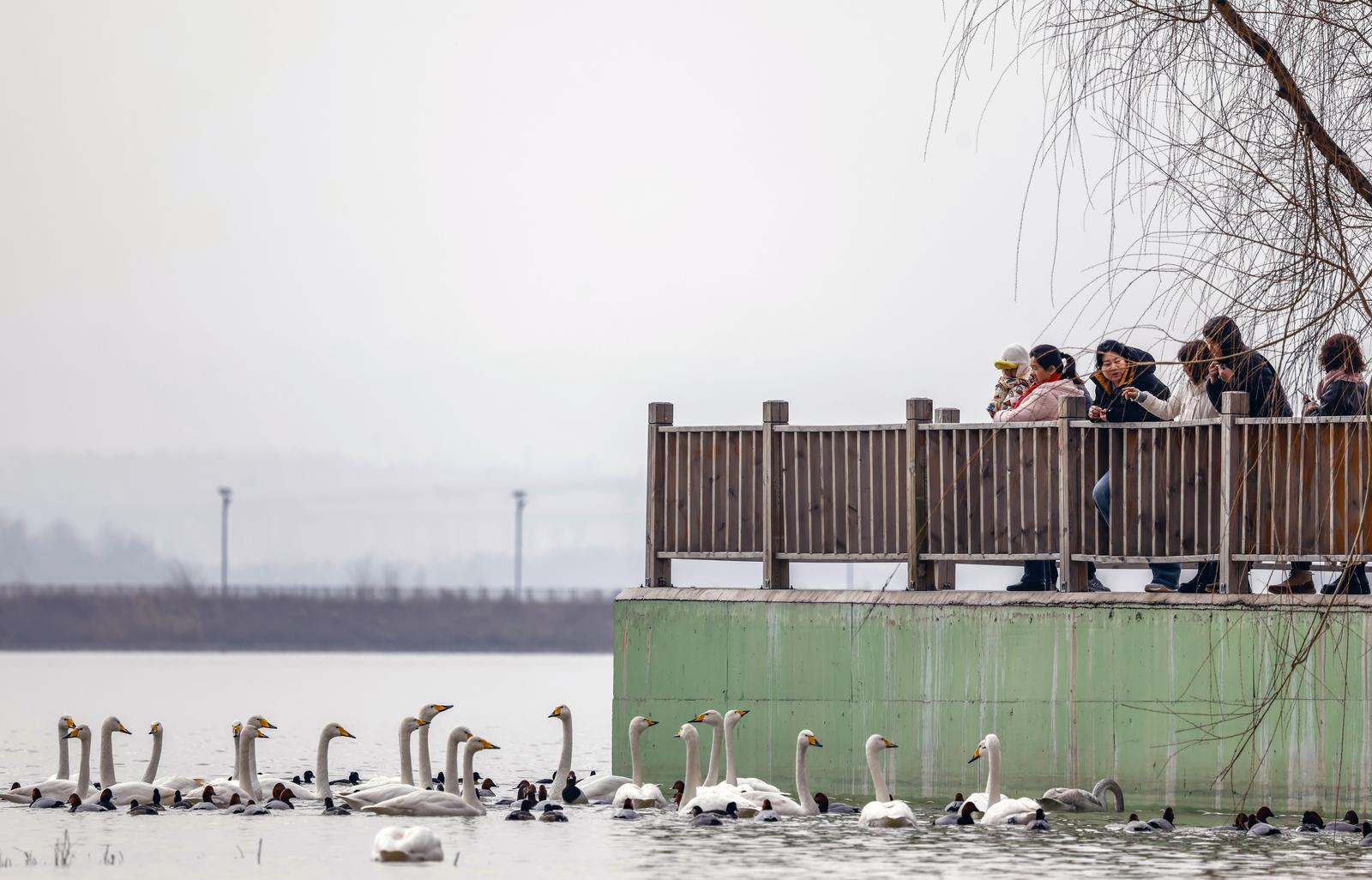 12月23日,运城市平陆县黄河湿地三湾段。成群的大天鹅在湖面游弋、嬉戏,洁白的羽翼与波光粼粼的水面相映成趣,引得众多游客驻足观赏、拍照打卡。平陆县黄河湿地三湾段三面环山、背风向阳、水草丰美,为迁徙而来的大天鹅提供了理想的栖息环境。每年10月中下旬,这些“白色精灵”便跨越万里长途迁徙至此,直至次年3月才陆续离去,停留时间长达5个多月,种群数量常年稳定在万只左右。