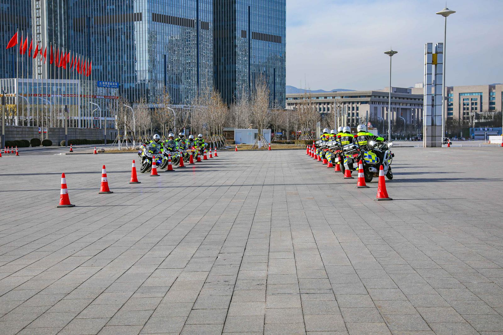 警员展示绕桩训练,整齐划一的动作尽显铁一般的纪律