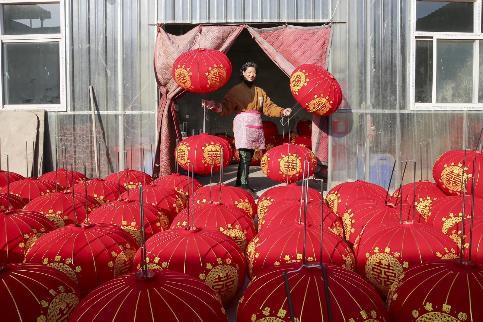 12月5日,运城稷山县稷峰镇杨赵村灯笼产业园区工人们正在赶制灯笼,为即将到来的新年作准备。 史云平摄