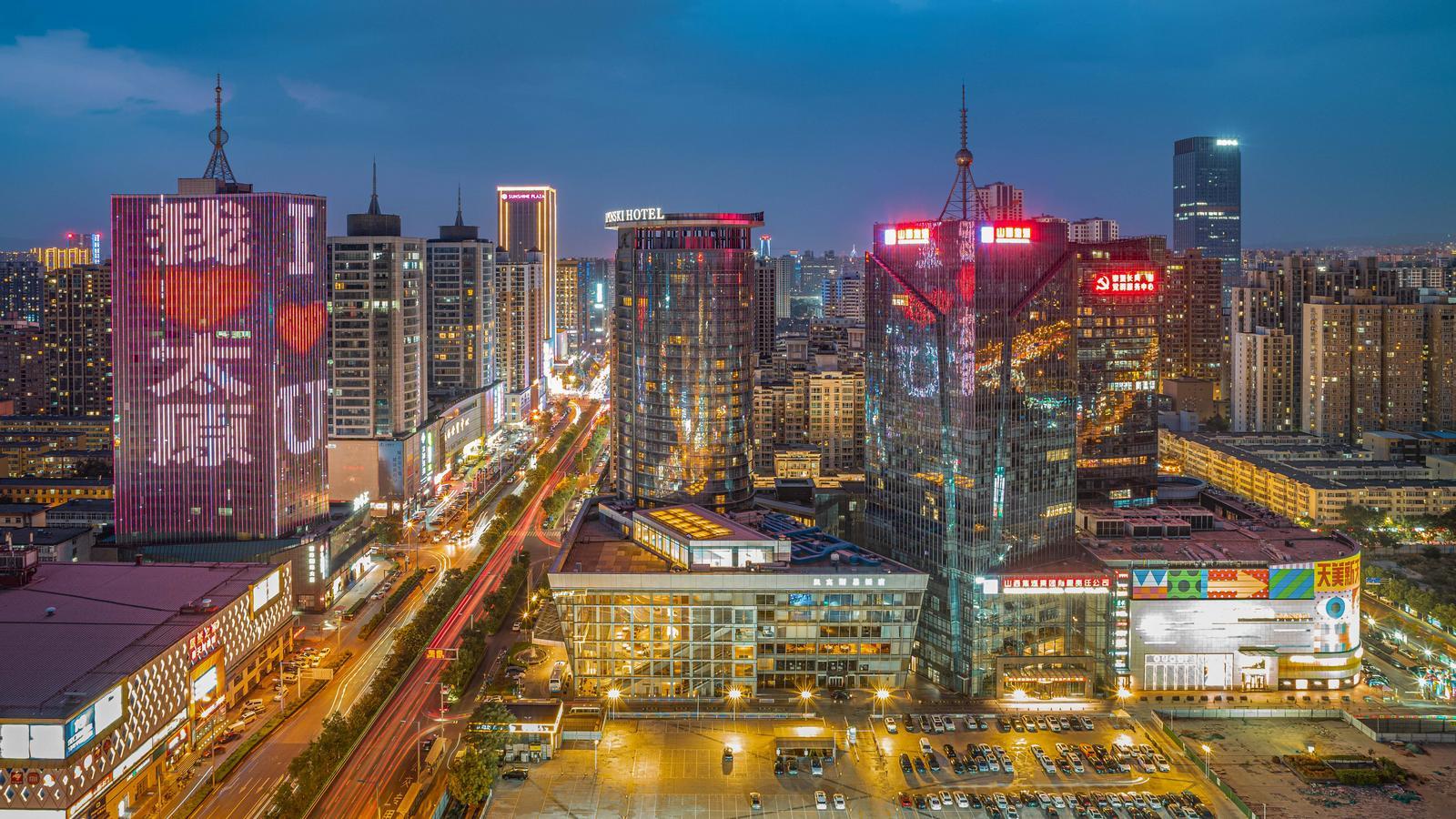 9月29日,夜幕降临下灯光璀璨的太原。 王泓锴摄