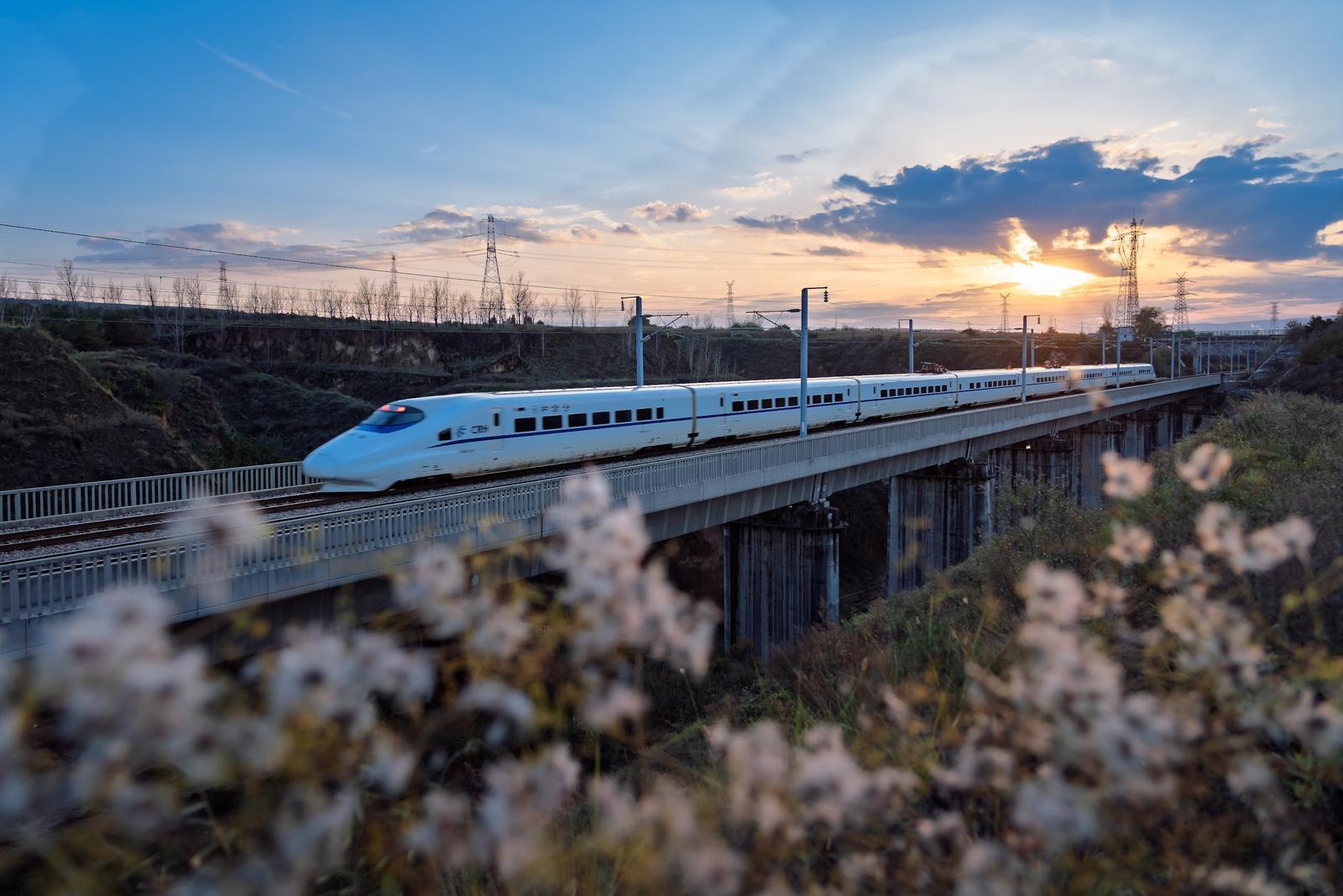 太原至阳曲段一列动车组列车穿梭于田野间。 贾拴旺摄