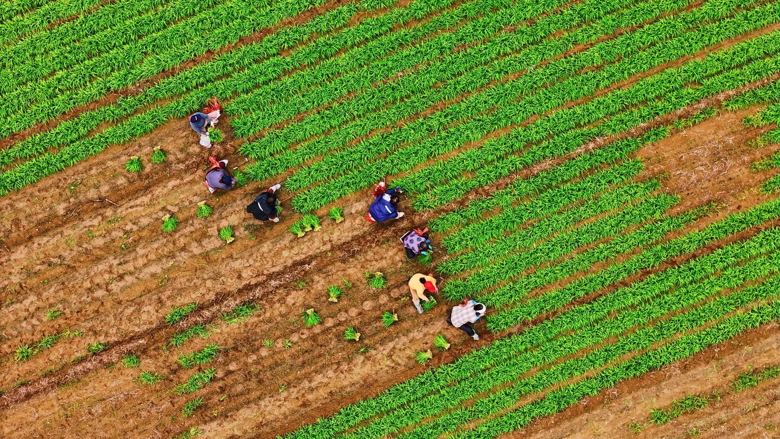 临汾市侯马市凤城乡柳河村的田野间,上百亩韭菜迎来丰收季节,菜农们正在收割韭菜。 石俊英摄