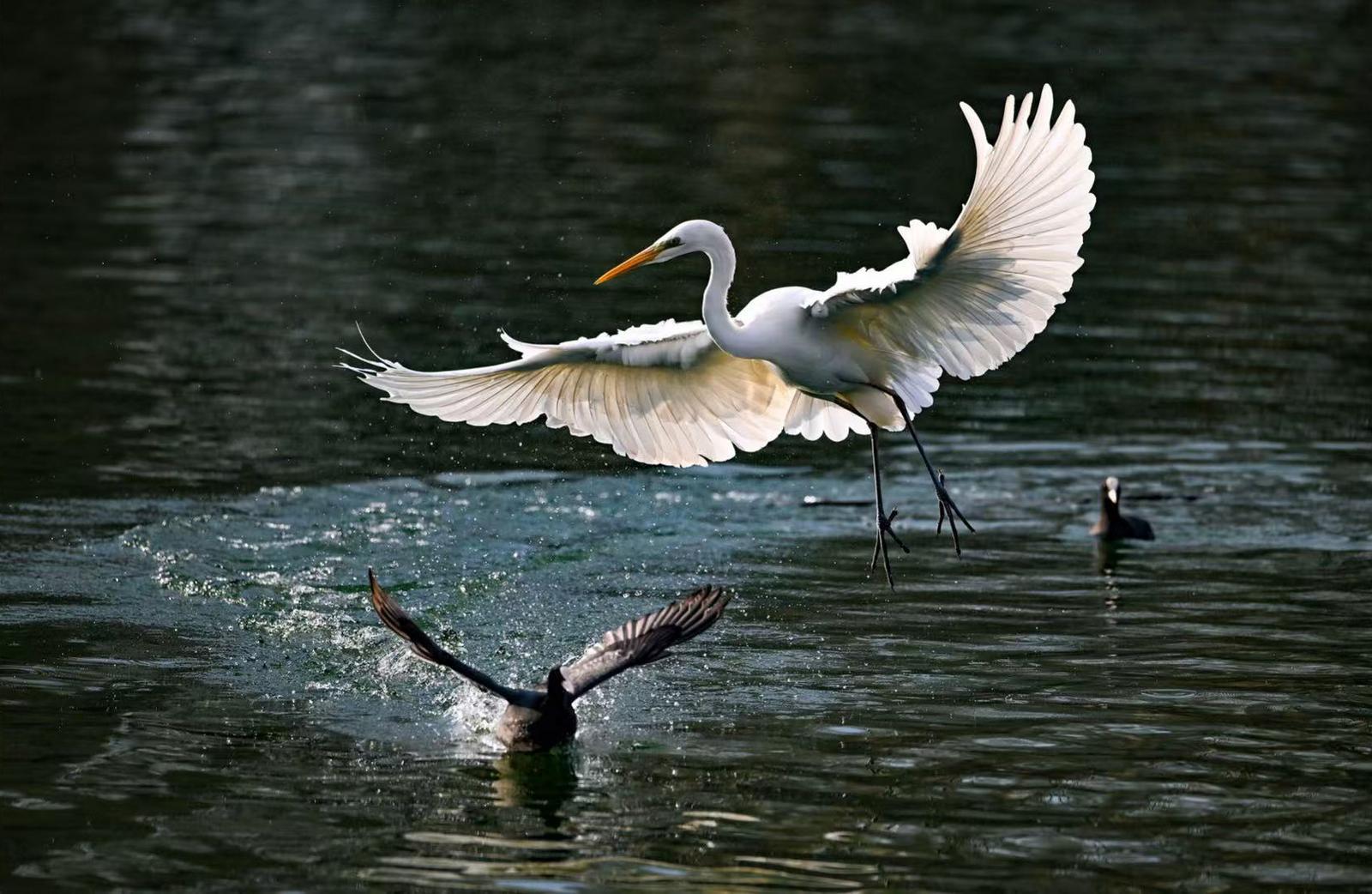 11月26日,众多白鹭在太原汾河景区湿地公园翩跹飞舞。 李兆民摄