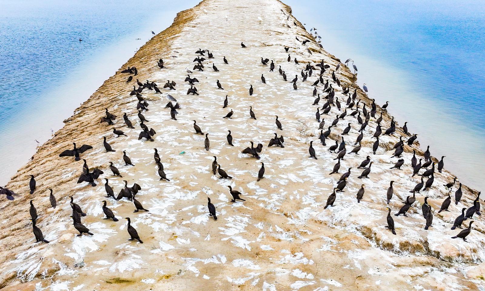 10月24日,运城市盐湖景区迎来一大批候鸟栖息。 姚中吉摄