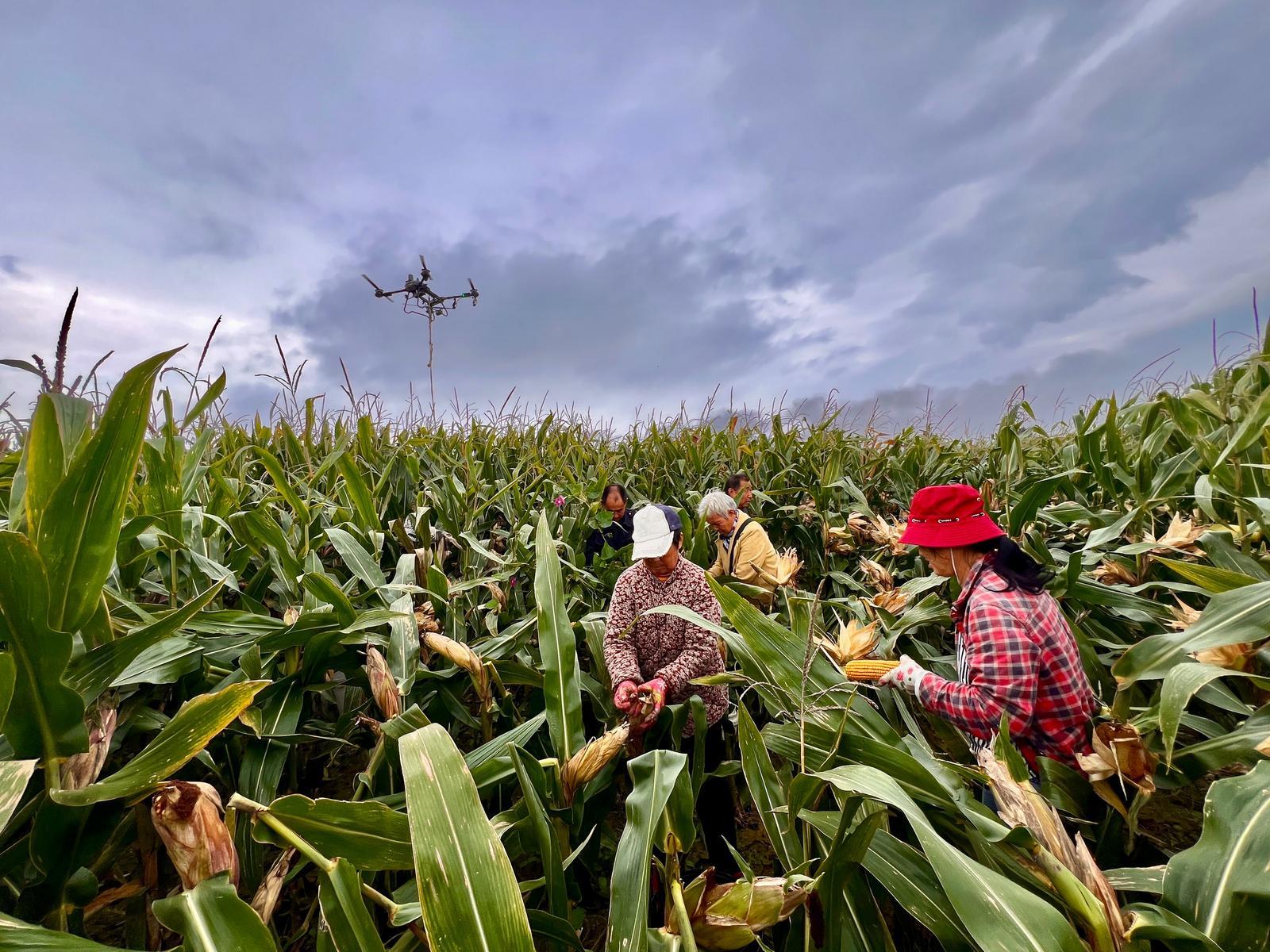 运城平陆县无人机助力秋粮高效归仓。 郝建摄