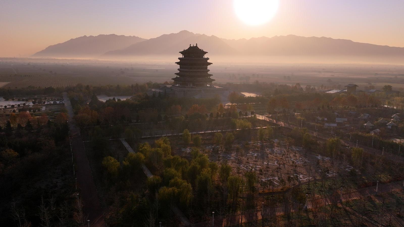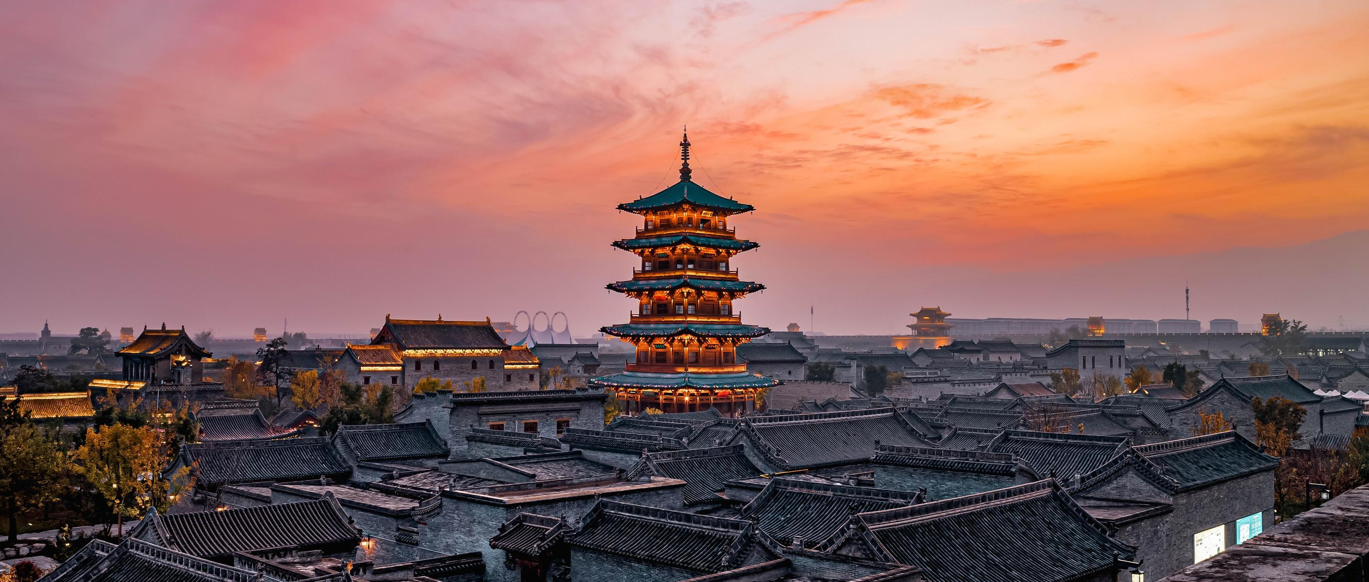 秋日,晚霞浸染下的太原古县城,尽显中华古建之美 。王泓锴摄