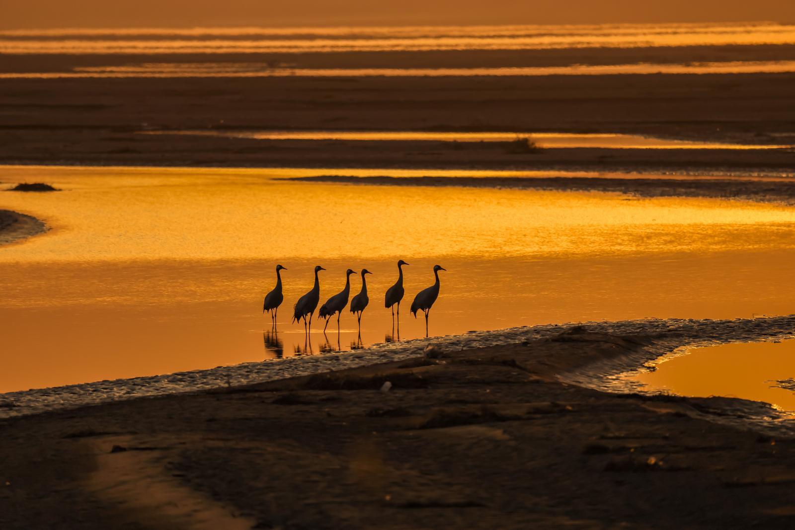 12月9日,成群灰鹤在黄河湿地河津段停留 陈军红摄