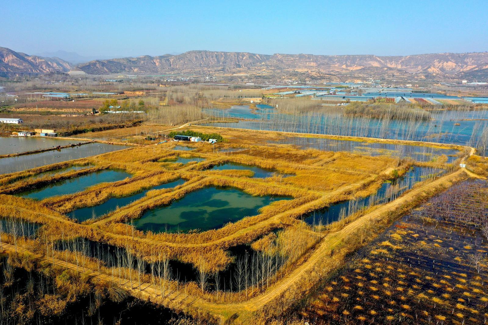 运城平陆县黄河湿地初冬美景如一幅壮美黄河生态画卷。 郝建摄
