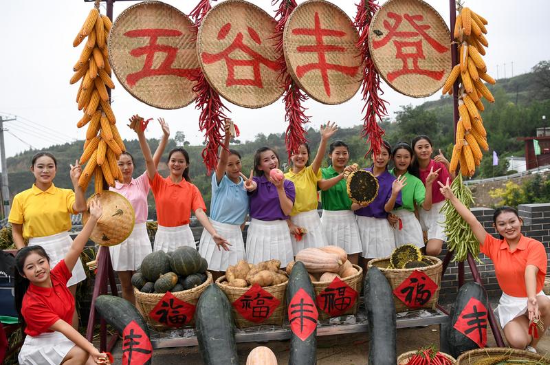9月24日,临汾市乡宁县尧西村,游客在丰收节活动现场拍照打卡。 闫锐鹏摄