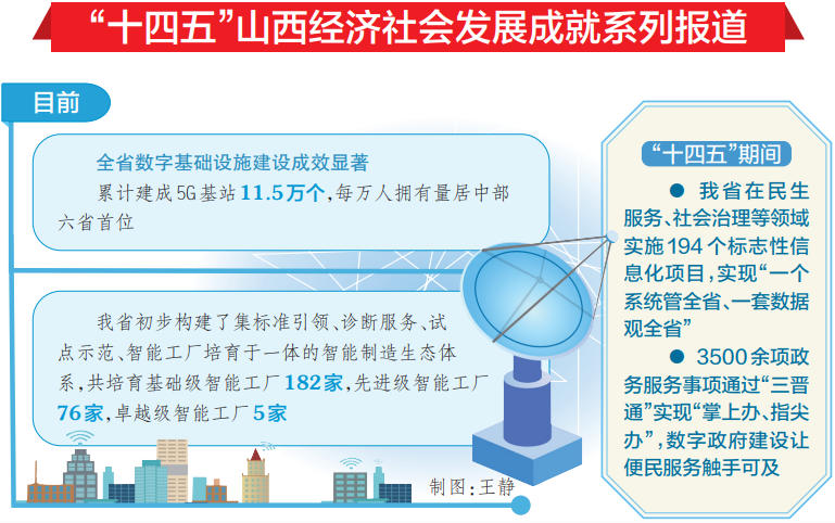 “十四五”时期,我省坚决贯彻落实“网络强国”战略部署,抢抓新一代信息技术创新发展机遇,全面立体构建全省数字经济发展体系,着力推动数字产业化、产业数字化、治理数字化互促共进,加快数字山西建设,推动经济社会数字化转型,在资源型经济转型进程中书写下亮眼的数字篇章。