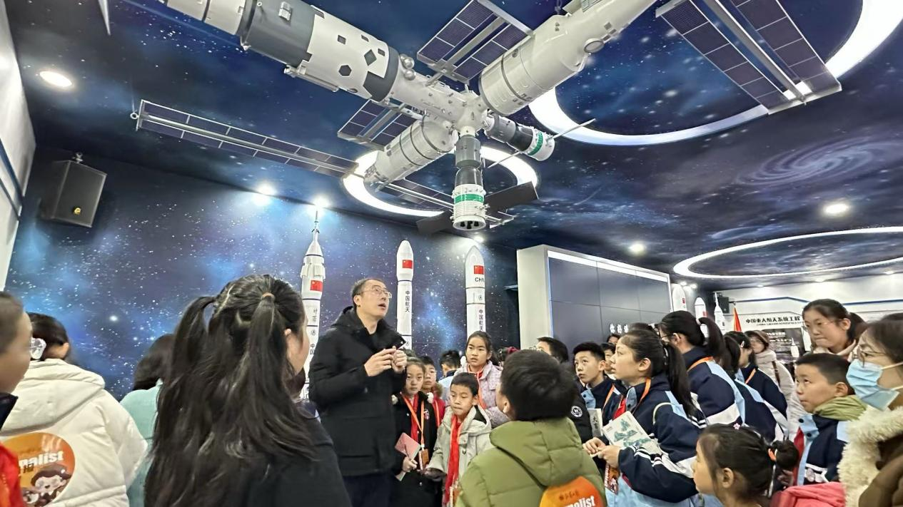 ▲小记者们参观空间站模型