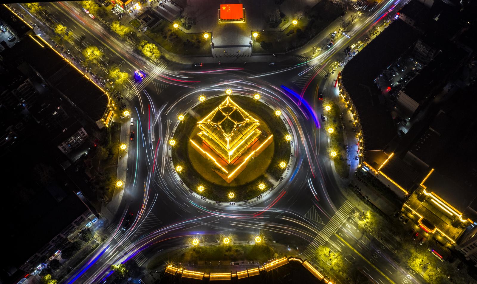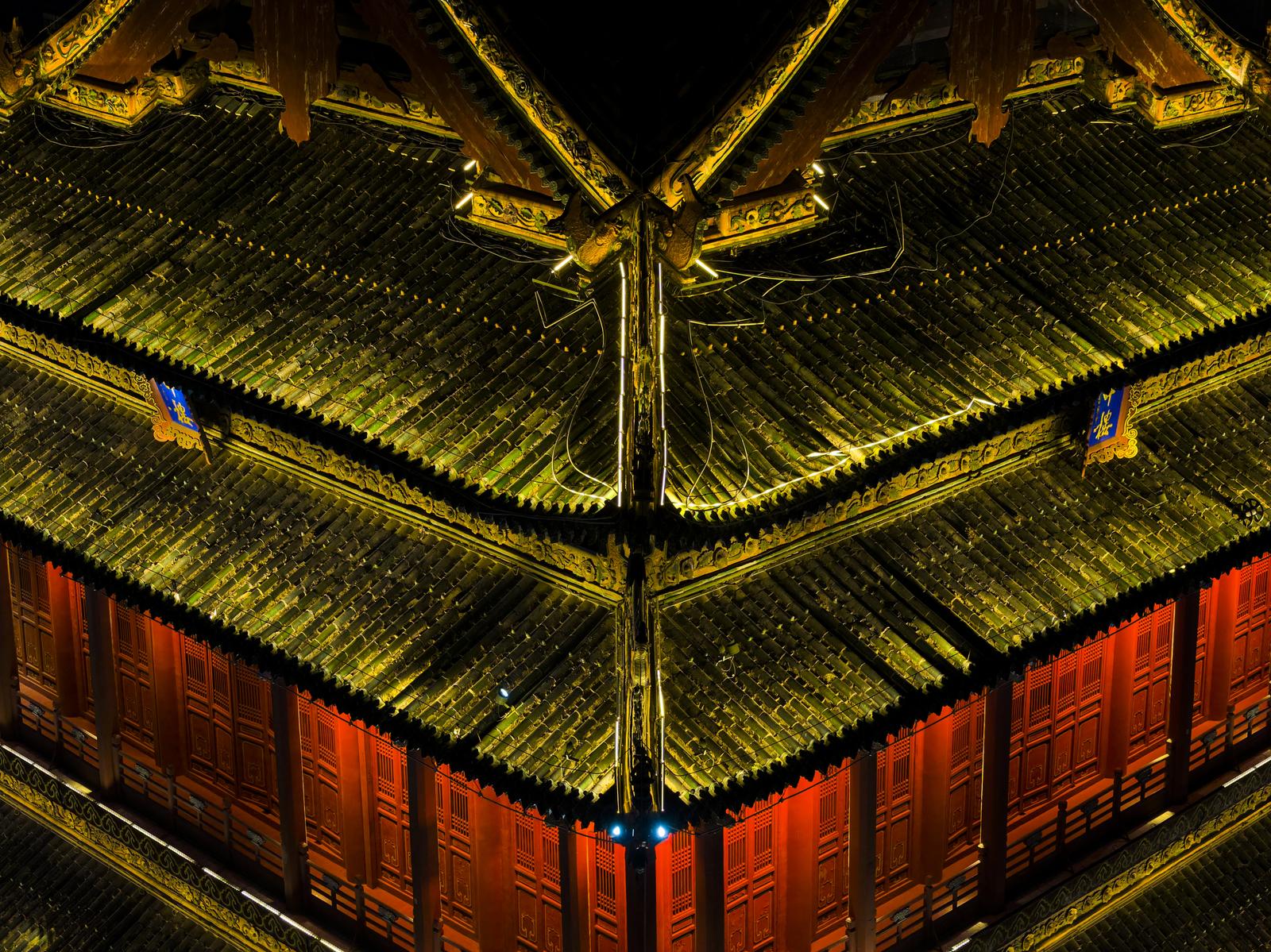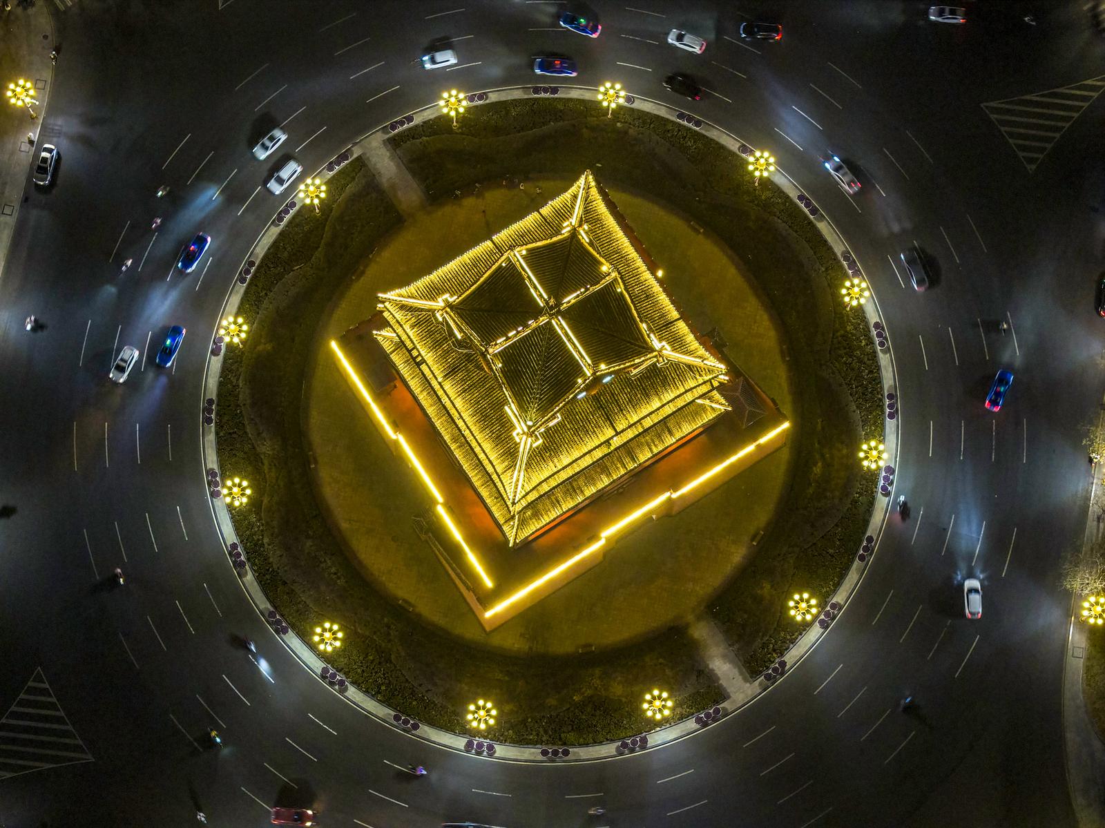 临汾:霓虹璀璨映鼓楼