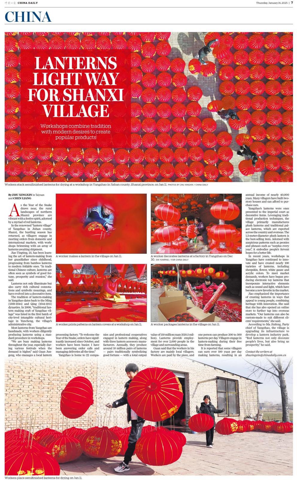 《中国日报》1月16日第7版:“灯笼村”点亮蛇年新春