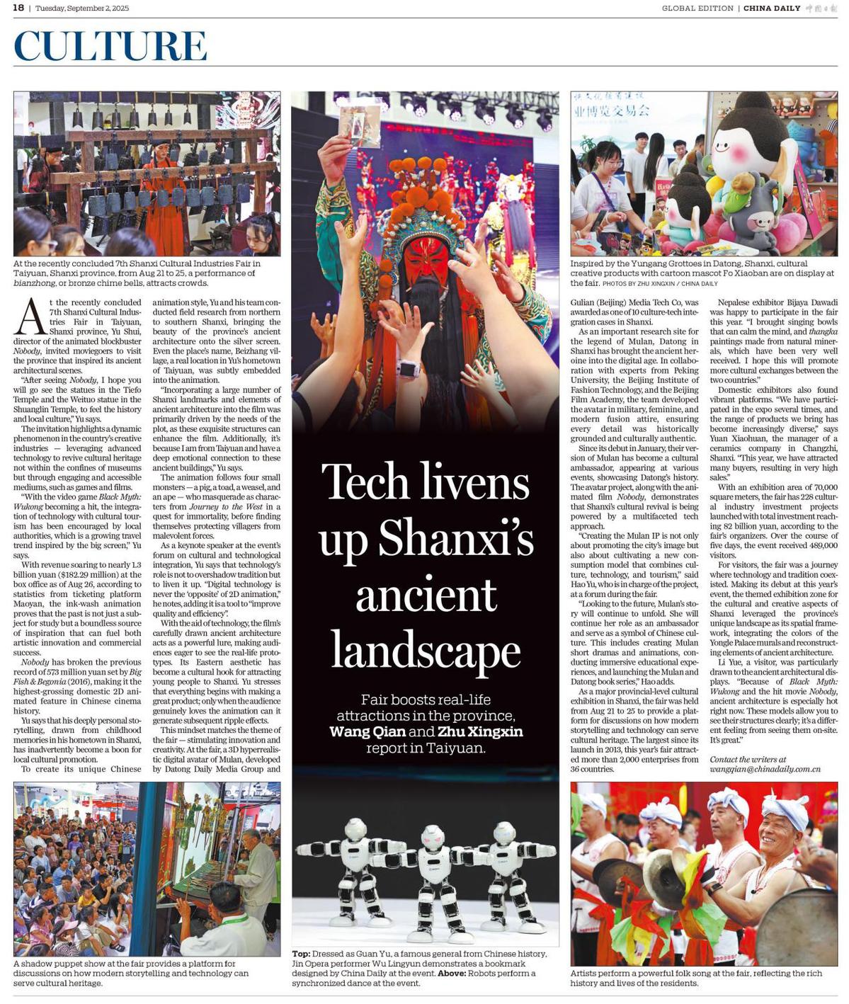 《中国日报》9月2日第18版:科技赋能山西文化焕发新生
