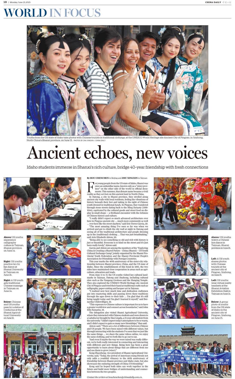 《中国日报》6月23日第10版:美国爱达荷州青年探秘山西