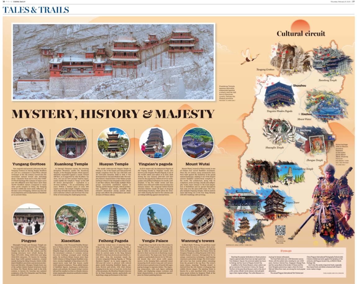 《中国日报》2月27日第16-17版“游走中国”栏目走进山西,探寻中国古代建筑奇迹,为海内外读者提供深度体验中国的实用指南。
