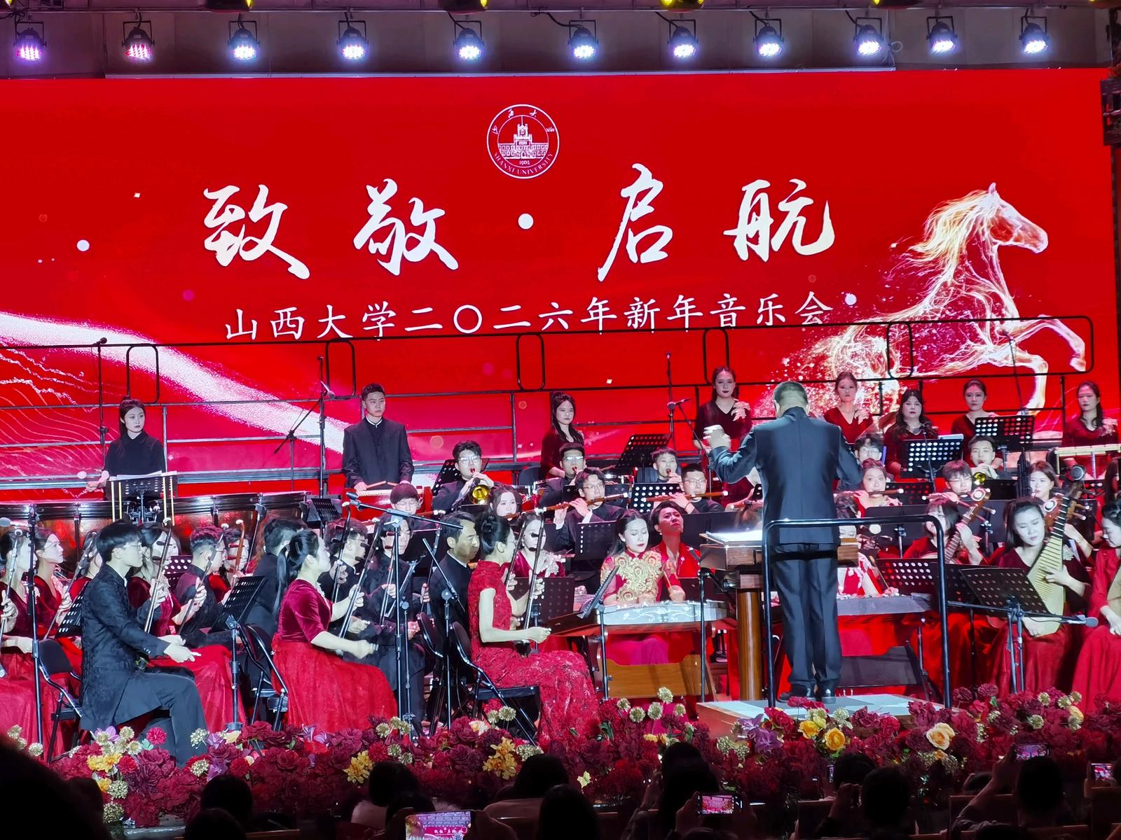 12月30日,山西大学2026年新年音乐会在该校音乐厅隆重举行。本场音乐会以“致敬·启航”为主题,通过中西经典音乐的精彩演绎,致敬学校过去一年取得的丰硕成果,启航新的一年崭新征程。