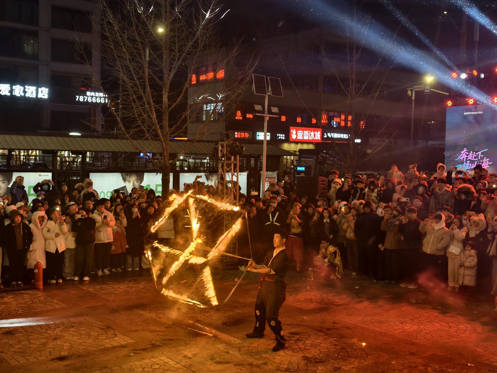 2025年12月31日,运城市中心城区万达广场、东星时代广场等商圈景点热闹非凡。舞狮、火壶表演、灯光盛宴和篝火晚会等丰富多彩的跨年活动吸引市民齐聚。大家欢聚一堂,共同迎接2026年的到来。