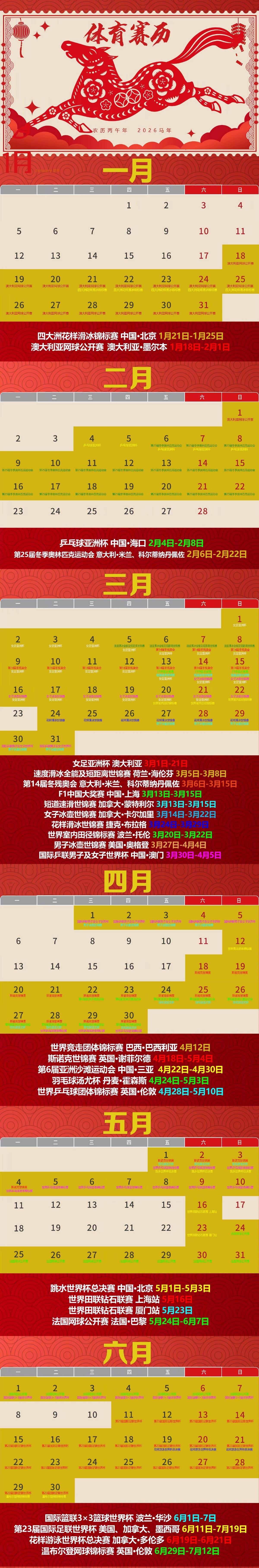 2.2026全年体育赛历来了 赶快收藏!