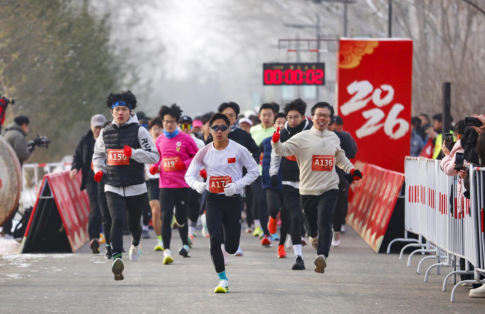 新年伊始,临汾市2026新年登高暨迎新年健康跑活动在该市汾河文化生态景区内鸣枪开跑,近千名健身爱好者迎着新年的阳光,踏上欢乐的跑道,在激情奔跑中感受城市活力,以昂扬健康姿态乐享元旦假期。