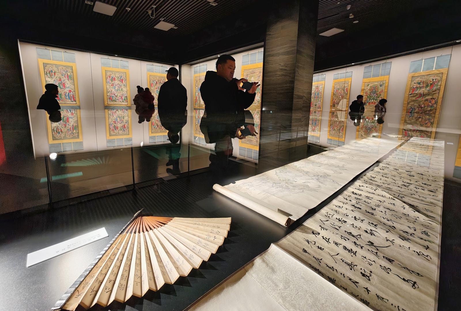 1月2日,游客在运城博物馆参观藏品,感受历史文化魅力,乐享假日时光。