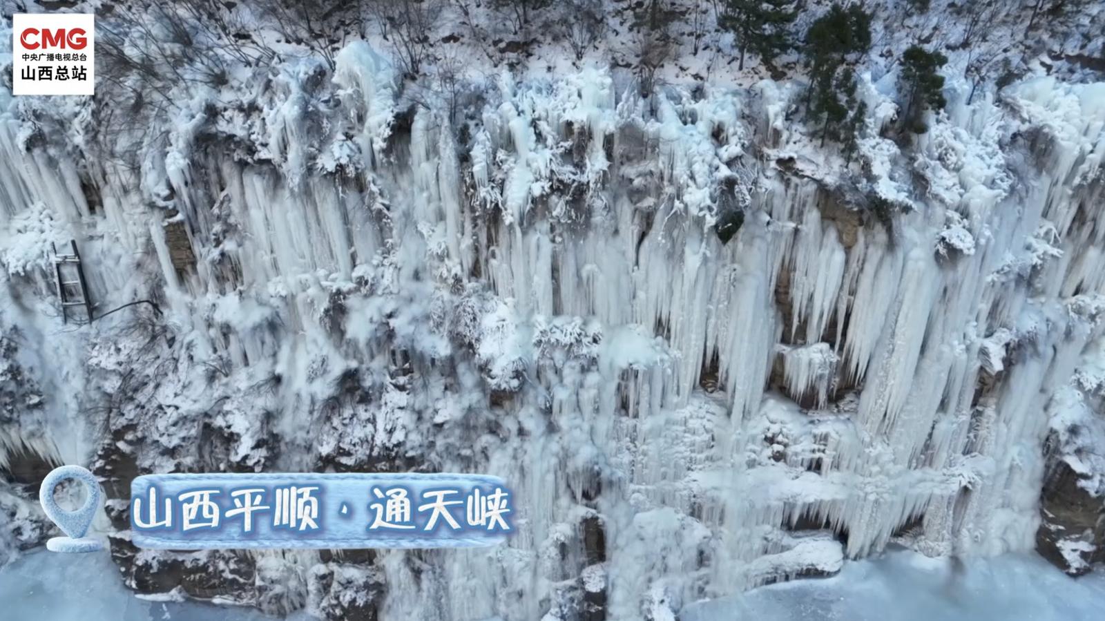 美若童话般冰雪世界!山西通天峡现冰瀑冰挂群
