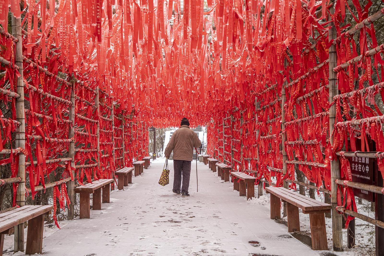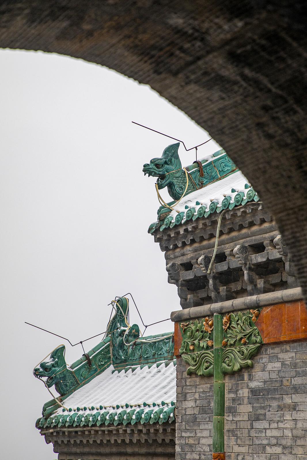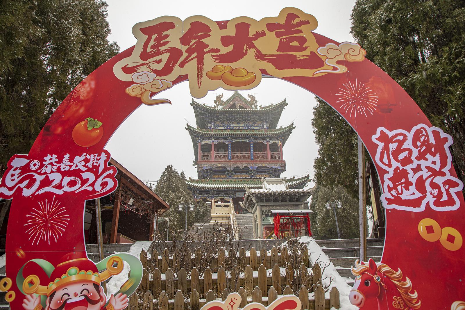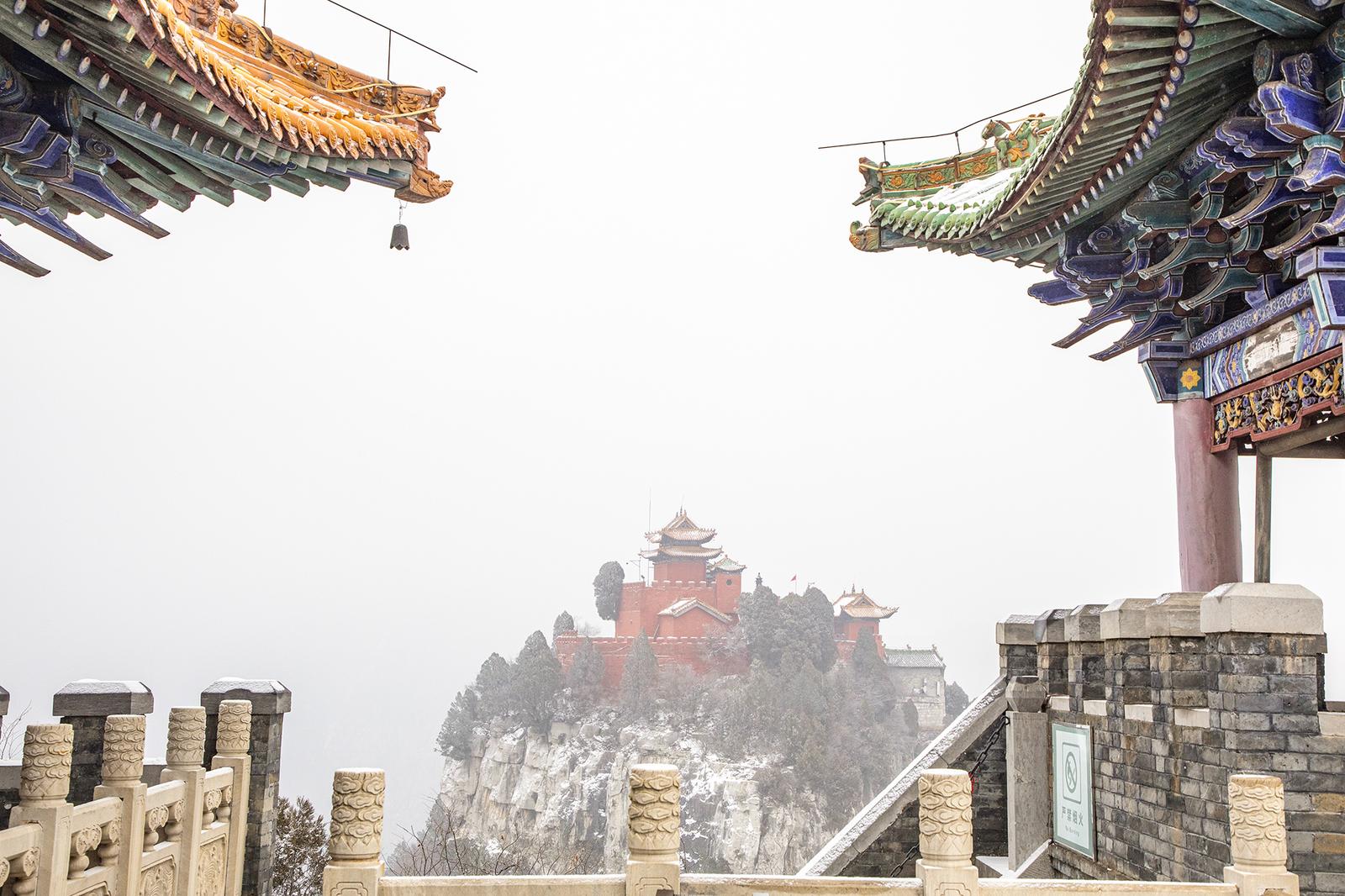新年伊始,晋城市泽州县珏山景区雪后初霁,银装素裹的山间古建筑群构成冬日里的靓丽景致。雪花轻覆其上,红墙金瓦与飞檐翘角在薄雾中若隐若现。远山在雪雾中朦胧掩映,近旁古建在白雪映衬下更添历史厚重感,游客驻足观赏、拍照留念。