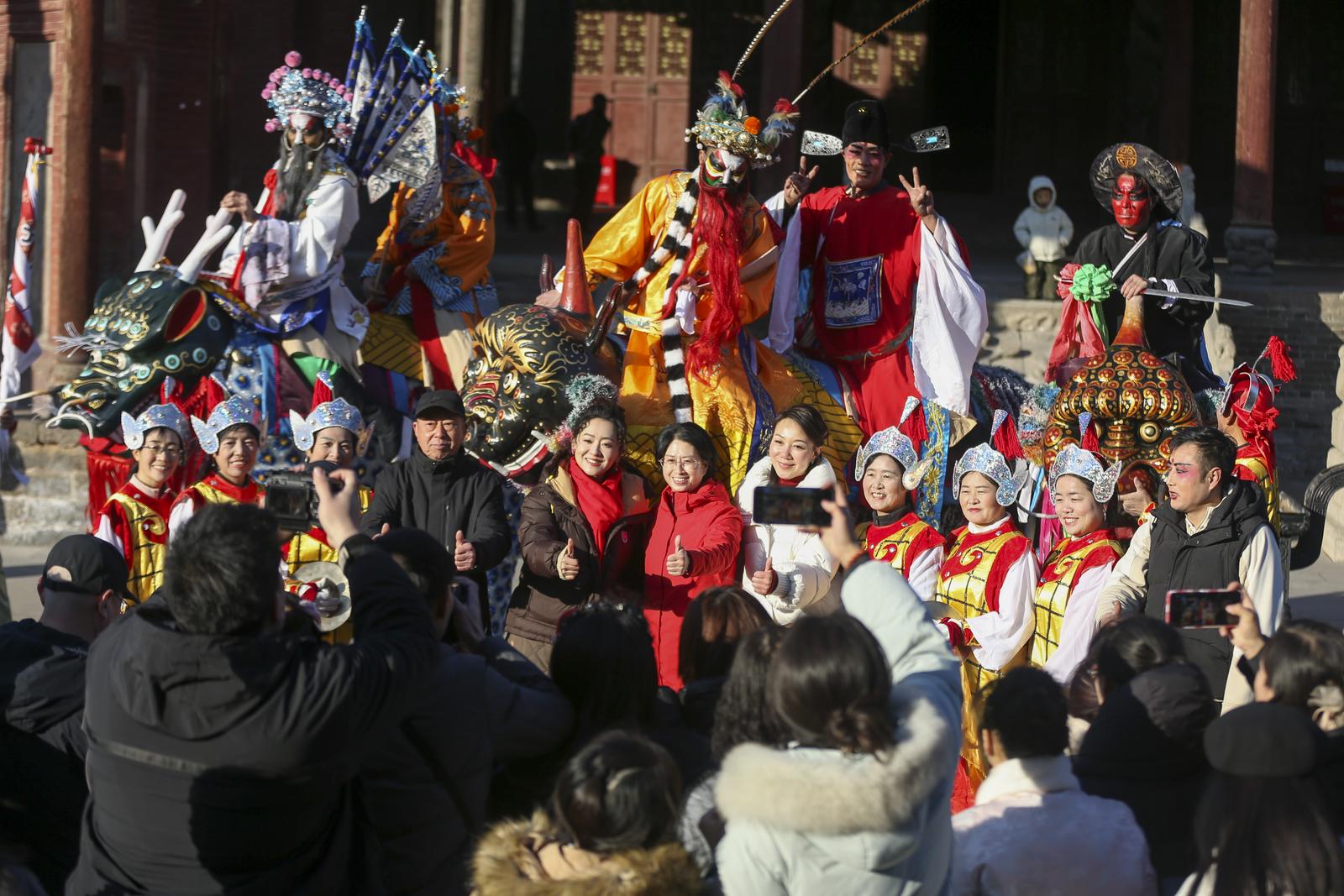 1月6日,稷山县清河镇阳城村民间艺人在稷王庙展演国家级非遗项目高跷走兽,展现传统民俗魅力。高跷走兽是稷山传统社火文化,含独角兽、麒麟等多种造型,为双人连体高跷表演,随锣鼓演绎神话传说,2006年列入首批国家级非遗名录。