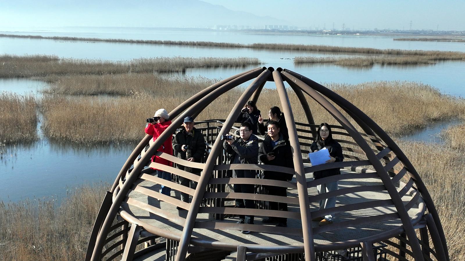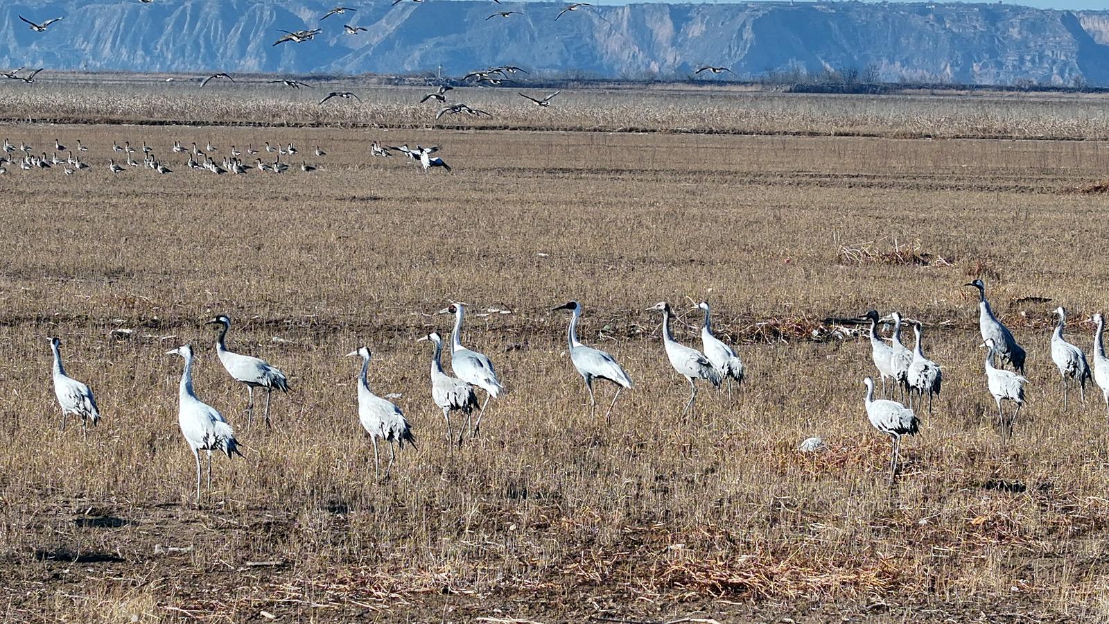 1月8日,在永济市伍姓湿地内,山西省生物多样性保护中心联合永济市林业局共同对永济市越冬水鸟进行调查,一群群越冬水鸟悠然栖息,构成了人与自然和谐共生的美好图景。