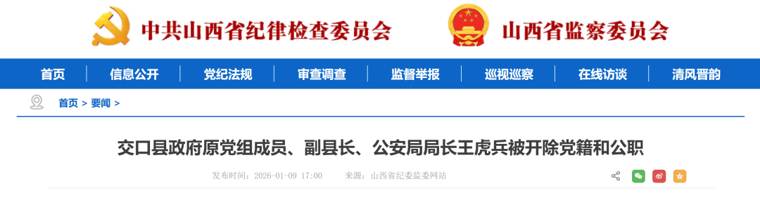 日前,经吕梁市委批准,吕梁市纪委监委对交口县政府原党组成员、副县长、公安局局长王虎兵严重违纪违法问题进行了立案审查调查。