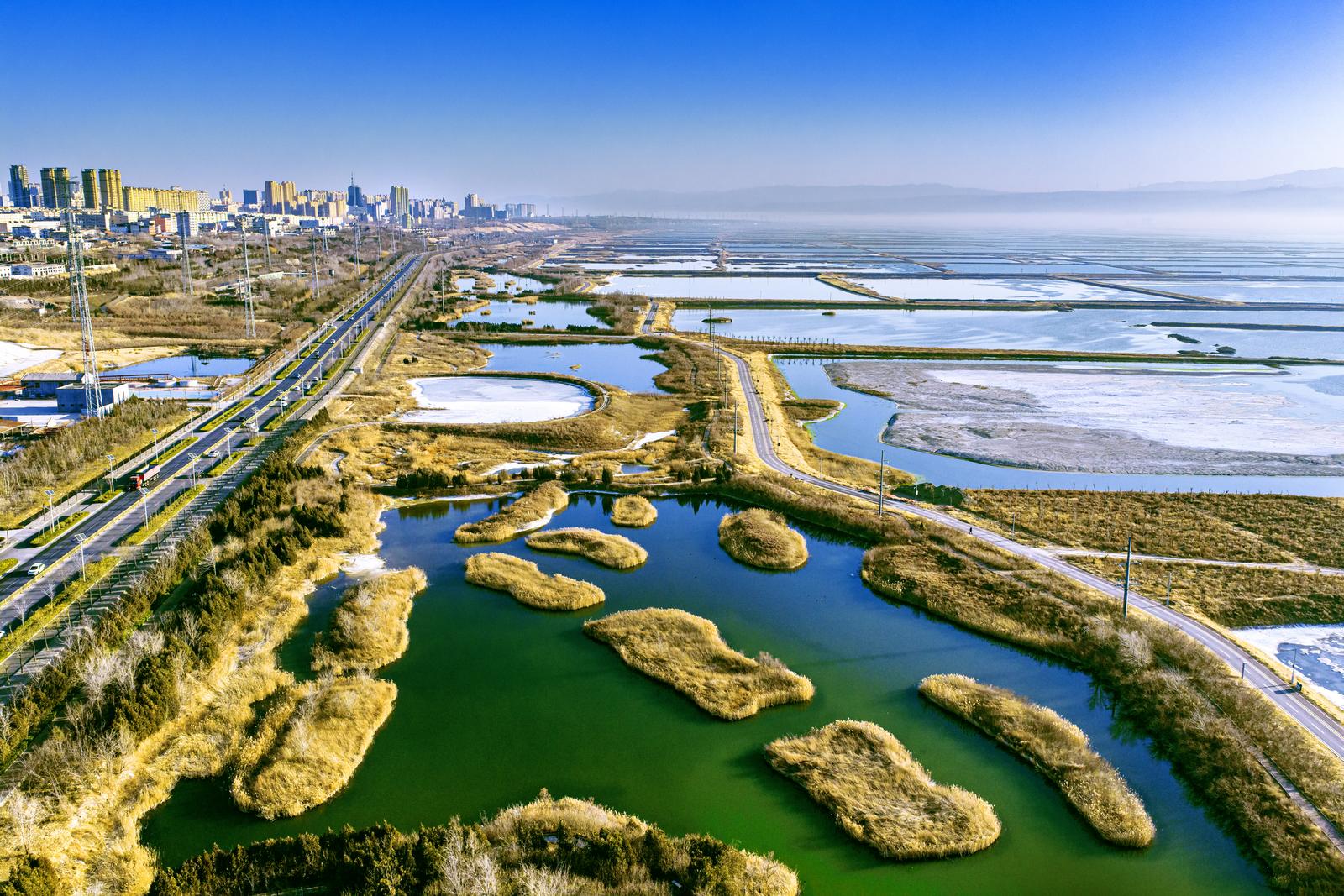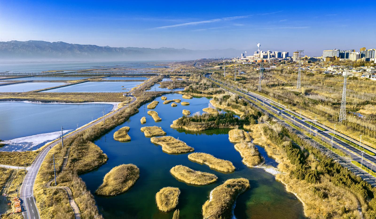 1月11日,冬日的运城盐湖湿地公园褪去了夏秋的葱茏繁茂,澄澈湖水间芦苇洲屿星罗棋布,水系阡陌纵横,错落交织成独具韵味的“千岛湖”景观,勾勒出一幅盐湖独特的冬日绝美画卷。