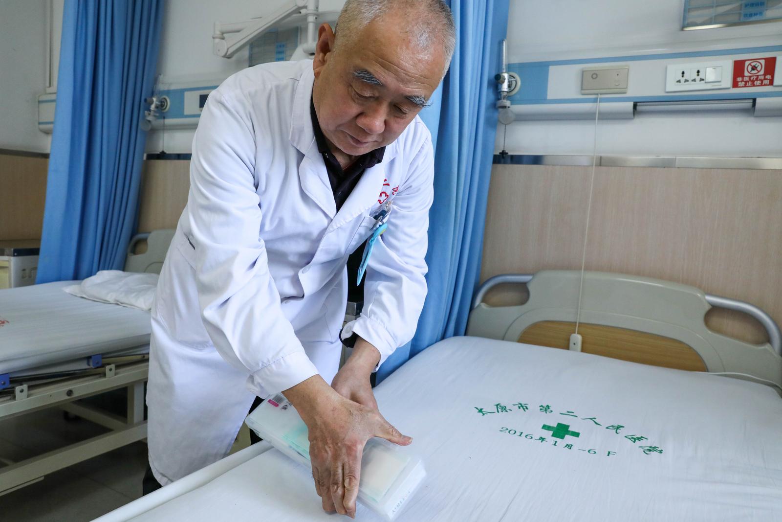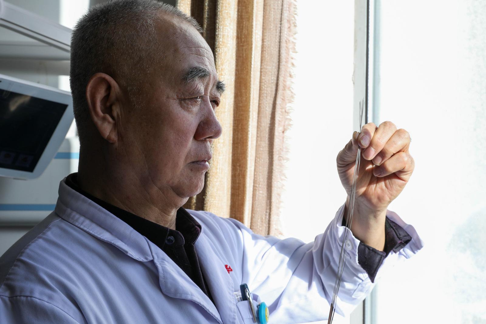 太原市第二人民医院中医科诊疗室里,阳光透过窗户洒在纤细的银针上,泛着温润而坚定的光。65岁的闫万明大夫正凝神施针,左手轻按患者穴位,右手持针快速刺入,捻转提插间手法利落干脆,眼神里满是专注。