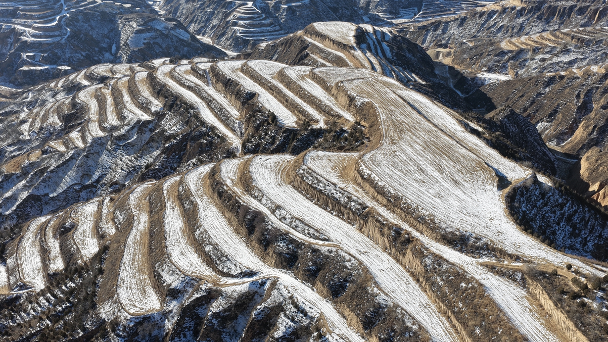 近日,永和梯田在晨光中尽显雄浑。连绵起伏的山峦间,梯田依山势顺势而造,层层叠叠、蜿蜒盘旋,宛如“立体天梯”直抵云端。田埂线条流畅交错,将黄土高原切割成一幅立体的几何画卷。从山脚到山顶,这无数级“阶梯”不仅锁住了水土,更在光影变幻下,展现出北方梯田独有的壮阔与苍茫。