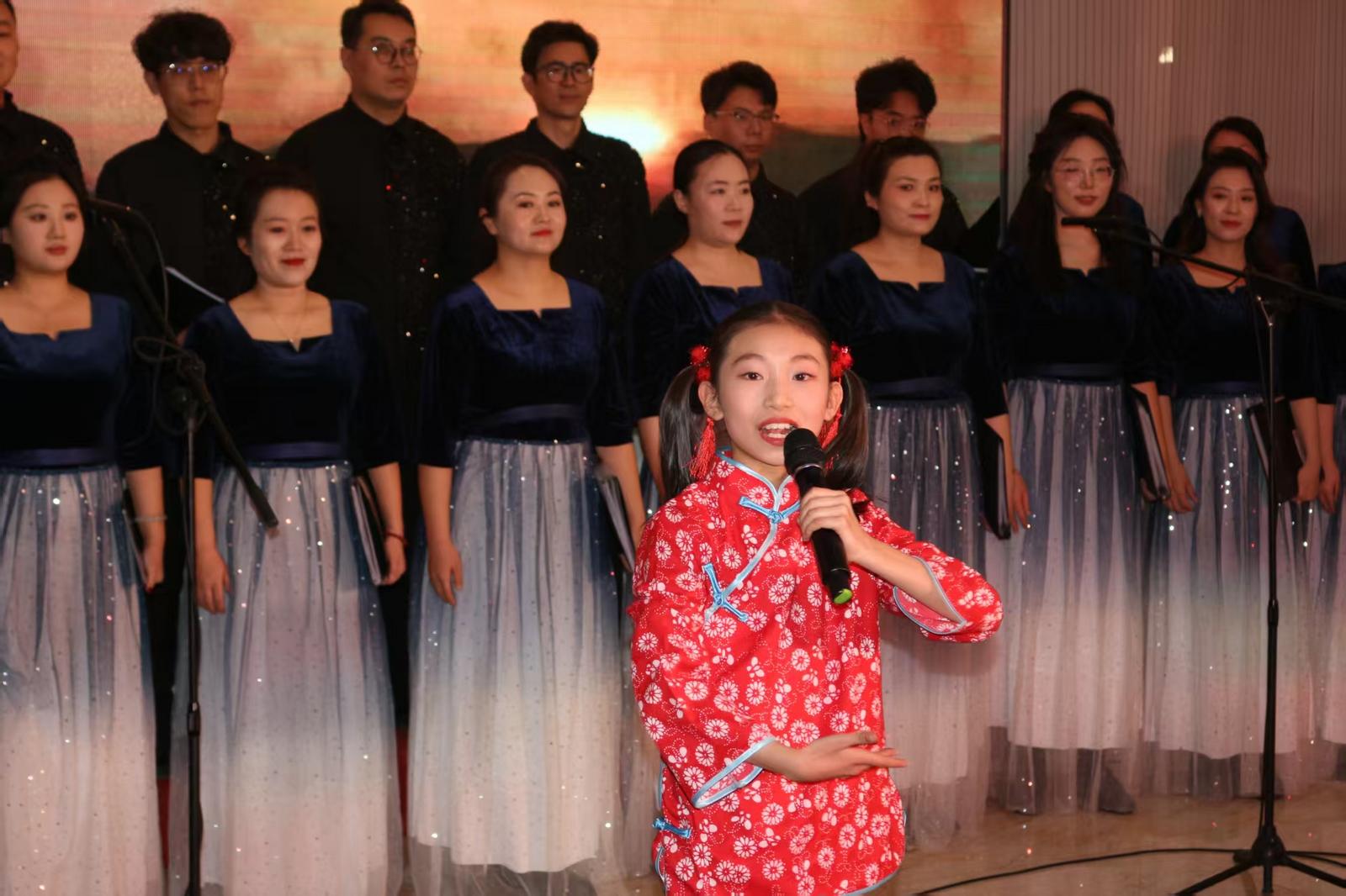 随着激昂的旋律奏响,合唱音乐会拉开帷幕,瞬间点燃全场热情。省文联艺创中心志愿者合唱团身着统一服装,以饱满的精神面貌、专业细腻的演绎,为现场观众献上了一场高品质视听盛宴。《在太行山上》《爱永在》旋律厚重,回望峥嵘岁月,传递出赓续传承的家国情怀,引得台下观众轻声跟唱;女声合唱《珊瑚颂》《如愿》婉转悠扬、余韵悠长,细腻诉说着对美好生活的无限向往;男声合唱《弹起我心爱的土琵琶》《游击队之歌》豪迈铿锵、气势如虹,熟悉的旋律勾起共同记忆,引发全场强烈共鸣;童声独唱《红星歌》登场,小女孩以高亢嘹亮、慷慨激昂的嗓音倾情演绎,瞬间将全场带回潘东子手握闪闪红星、心怀赤诚信仰的岁月,唤起众人心底的红色记忆。《灯火里的中国》《我的祖国》压轴登场,旋律响起瞬间,全场掌声雷动,台上台下齐声高歌,喝彩声、欢呼声此起彼伏,歌声里满是对祖国繁荣昌盛的深情祝福,对幸福生活的由衷赞美,将整场演出推向最高潮。